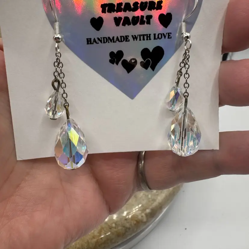 Handmade With Love Aurora Borealis Swarovski Crystal Earrings. Made by me, Trish. 925 Sterling fishhooks.