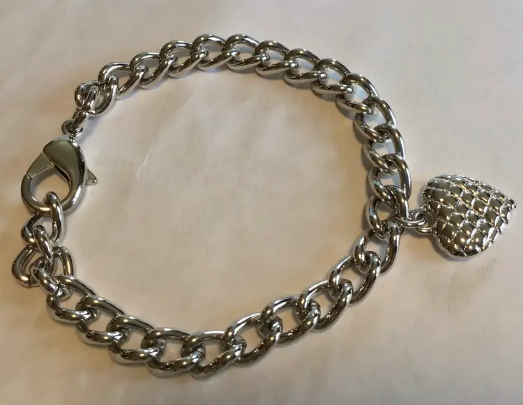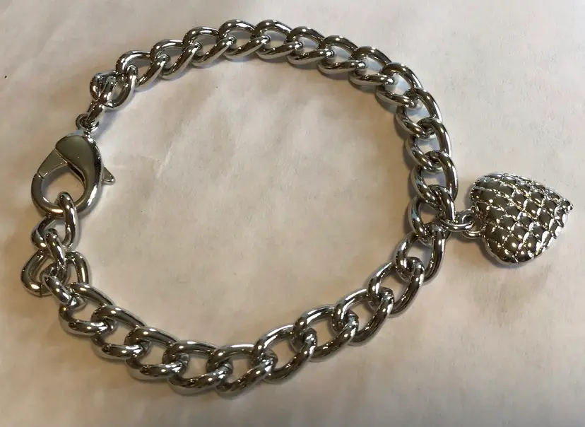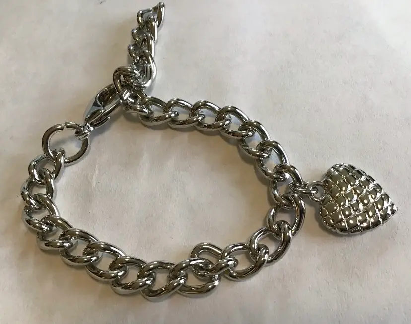 Silver tone 9” chain with heart charm, lots of adjustment. #685