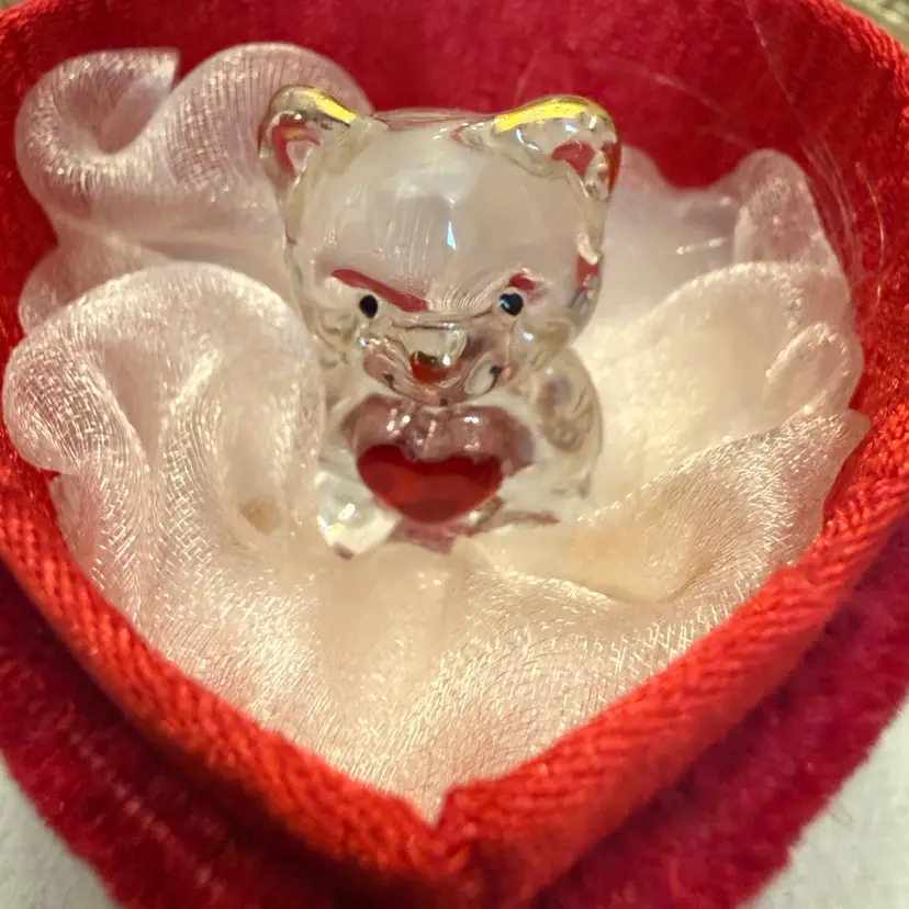 Heart Velvet Box With Tiny Bear