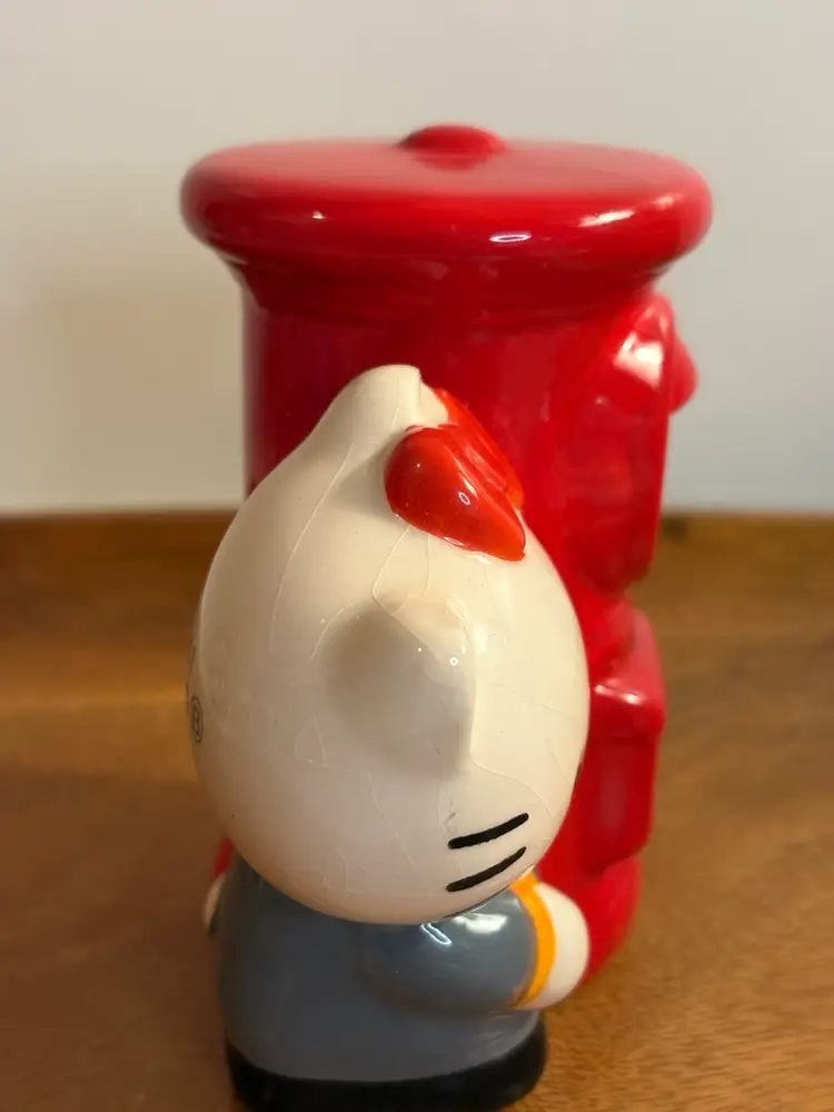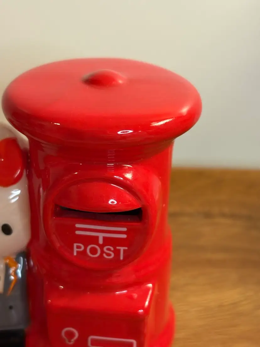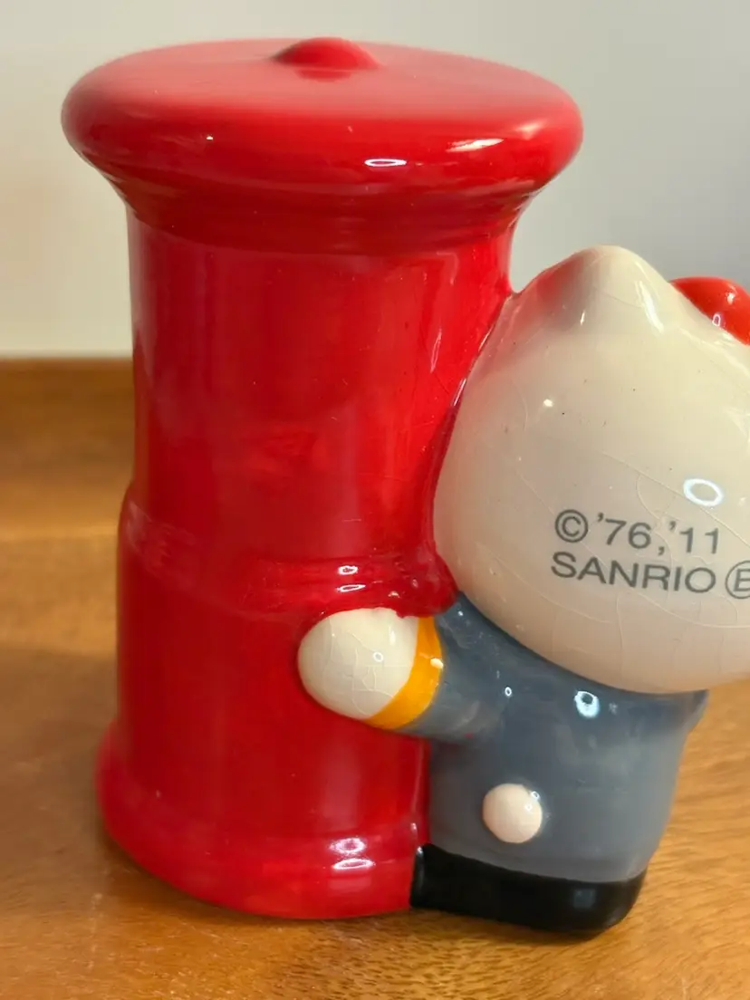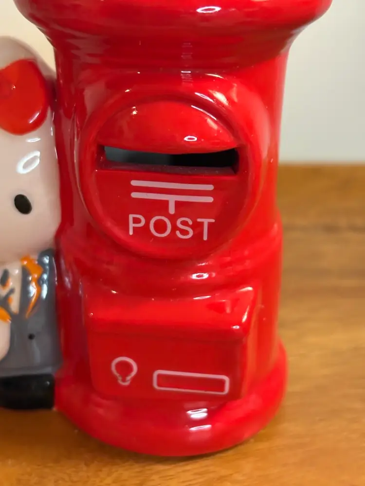 This adorable Hello Kitty Sanrio Post Savings Bank from 2011 is a must-have for collectors of Japanese kawaii goods. Designed as a classic piggy bank, Hello Kitty wears a charming red post box theme, capturing the nostalgic charm of Japan’s beloved postal iconography and Sanrio’s timeless design.