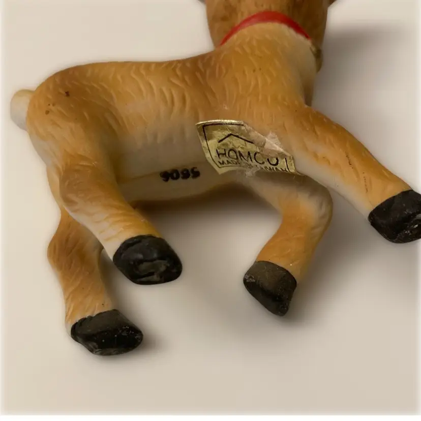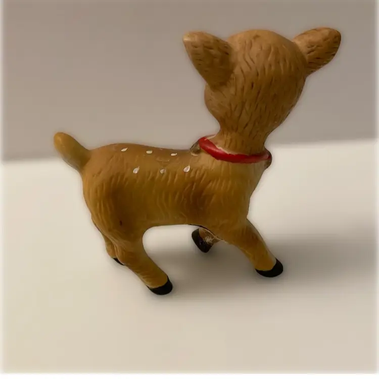 Homco Taiwan bisque Bambi reindeer figurine. She measures 3” x 1 1/4” x 3 1/4” tall. Paint is in good condition.