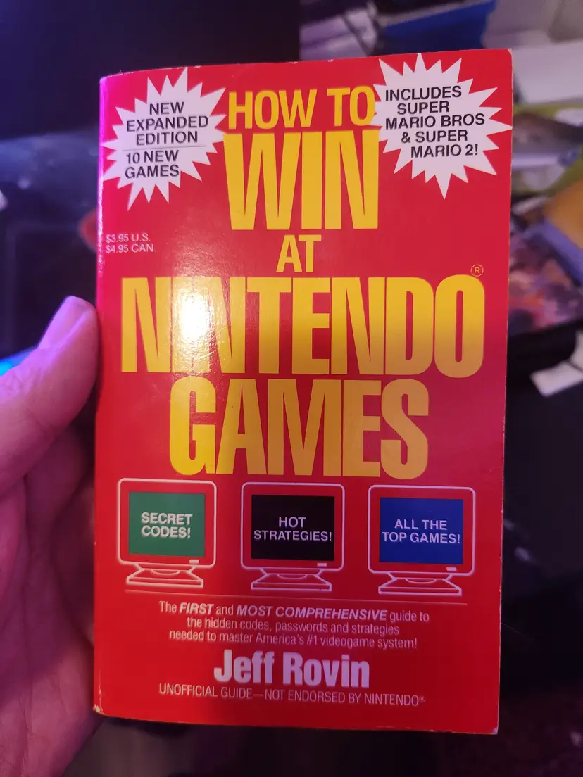 Classic guide with secret codes and strategies for Nintendo games, including Super Mario Bros and Super Mario 2.
