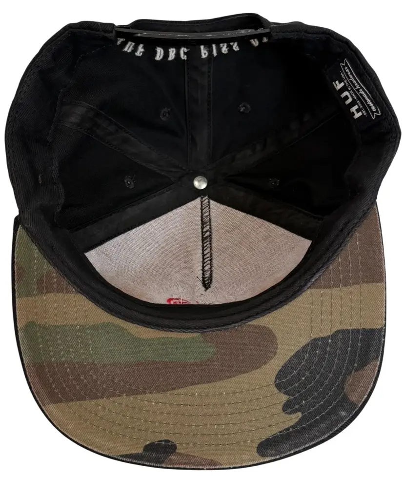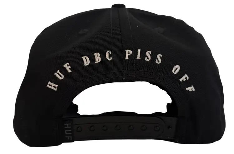 The HUF DBC MFG Co Piss Off Black Flat Brim Lady Killa Puff Puff Est. 2002 Snapback hat is a stylish and versatile accessory suitable for various occasions such as travel, parties, casual outings, and workwear. Made from cotton with a canvas fabric type, this adjustable snapback hat features a solid black color with a classic 90s theme and Puff Puff design. Perfect for both men and women, this HUF hat is a must-have addition to any wardrobe looking for a touch of vintage flair.