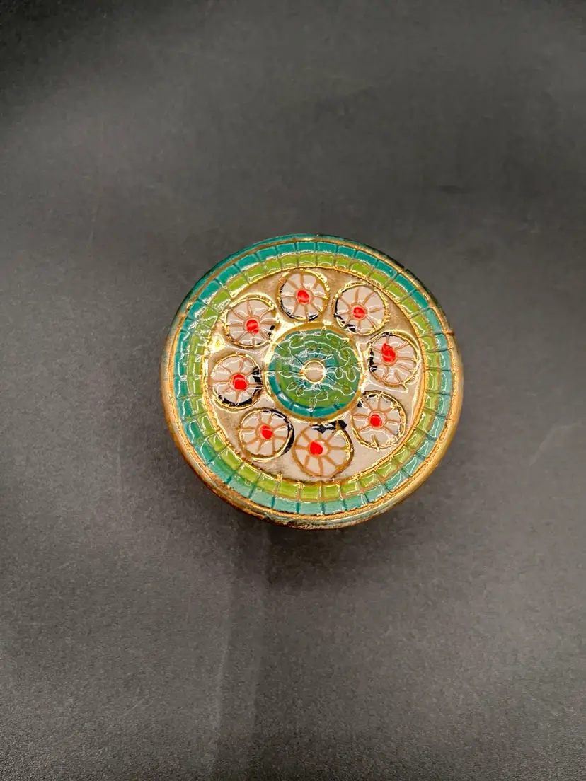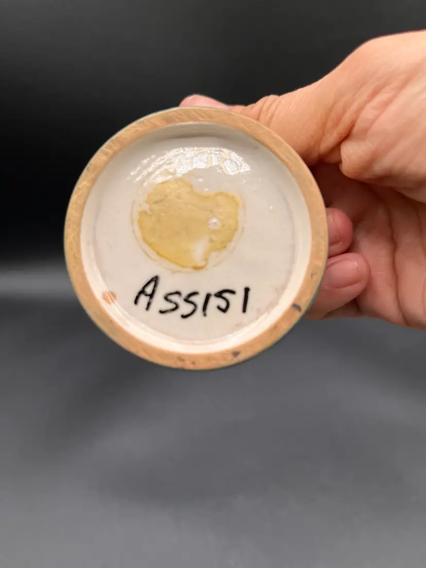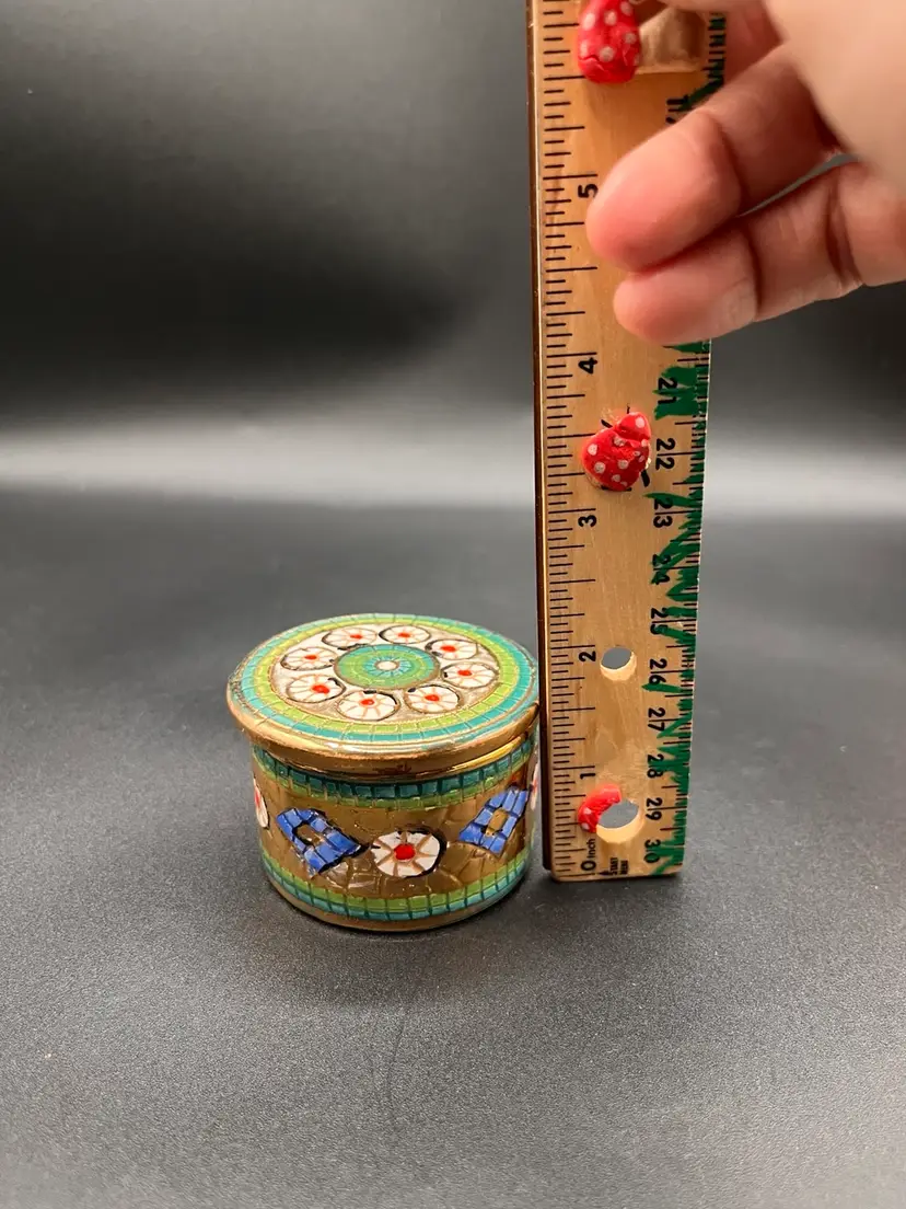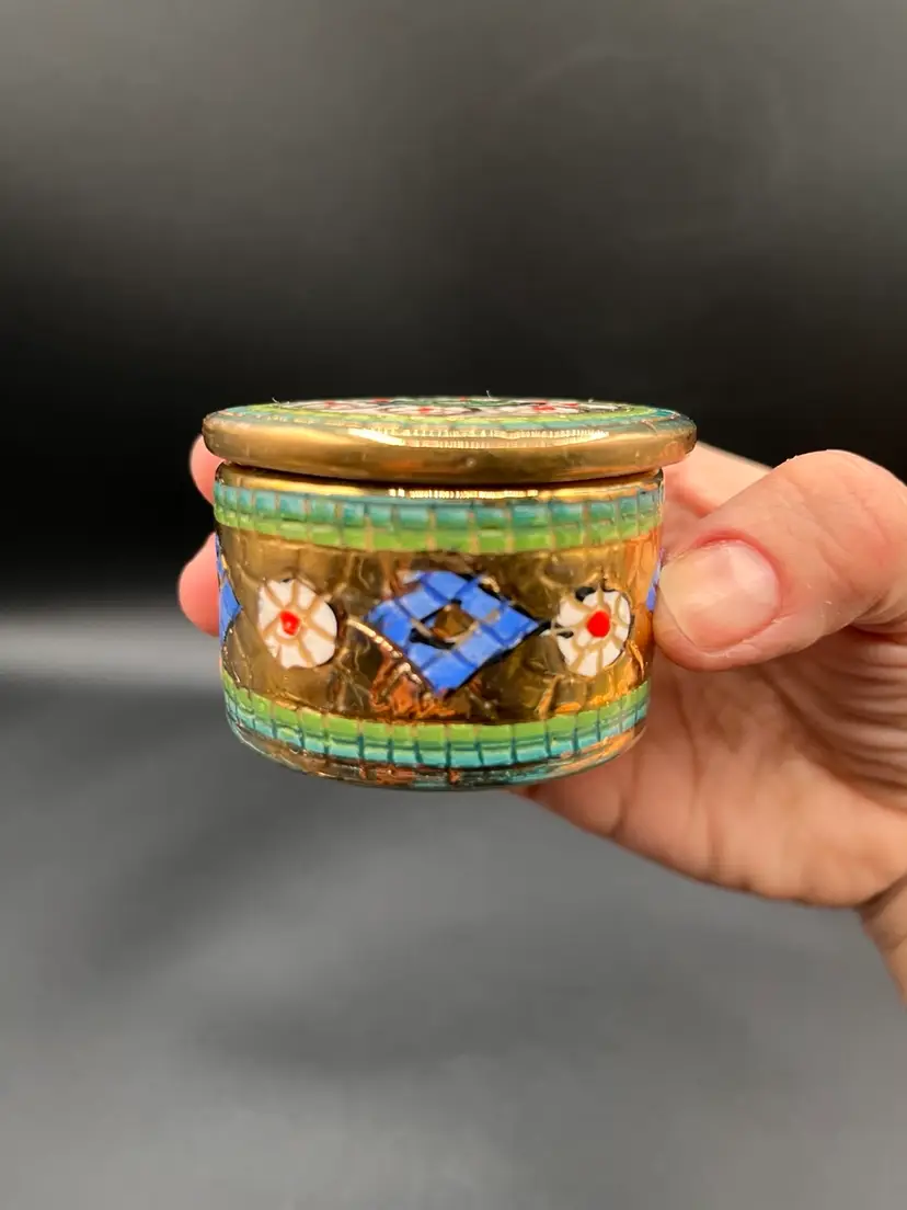 Italian Assisi Pottery Micro Mosaic Lidded Trinket / Votive Candle 2.5”D