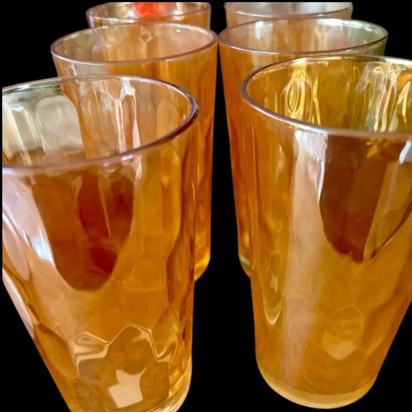 5”x 2.5” 6 Jeanette Glasses Iridescent Lustre Marigold Honeycomb Tumblers No cracks or chips!