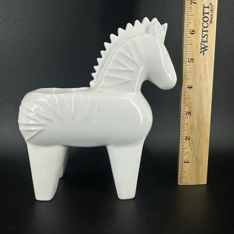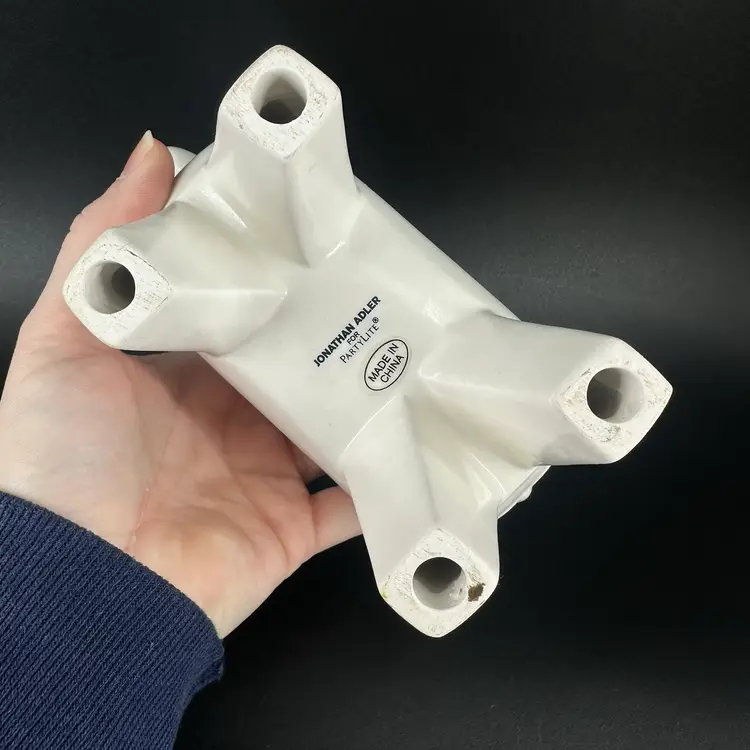 Jonathan Adler Partylite ceramic zebra candle holder. No chips or cracks. Measures approximately 6 3/4” tall. Has a printed logo on bottom, see pictures. Made in China.