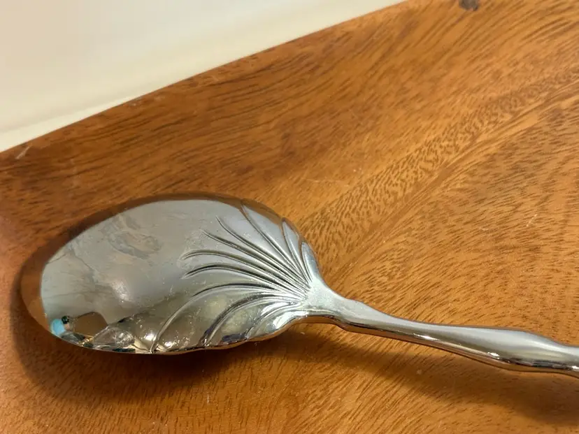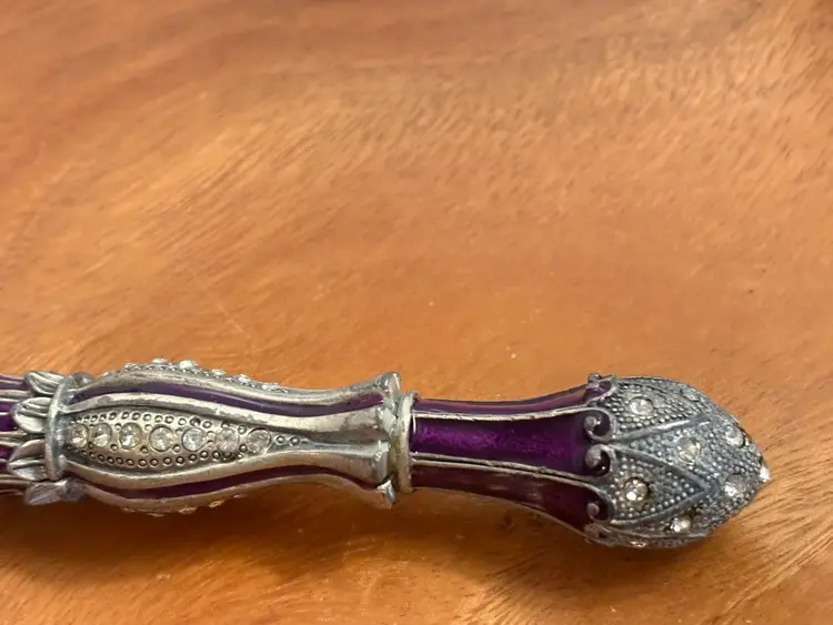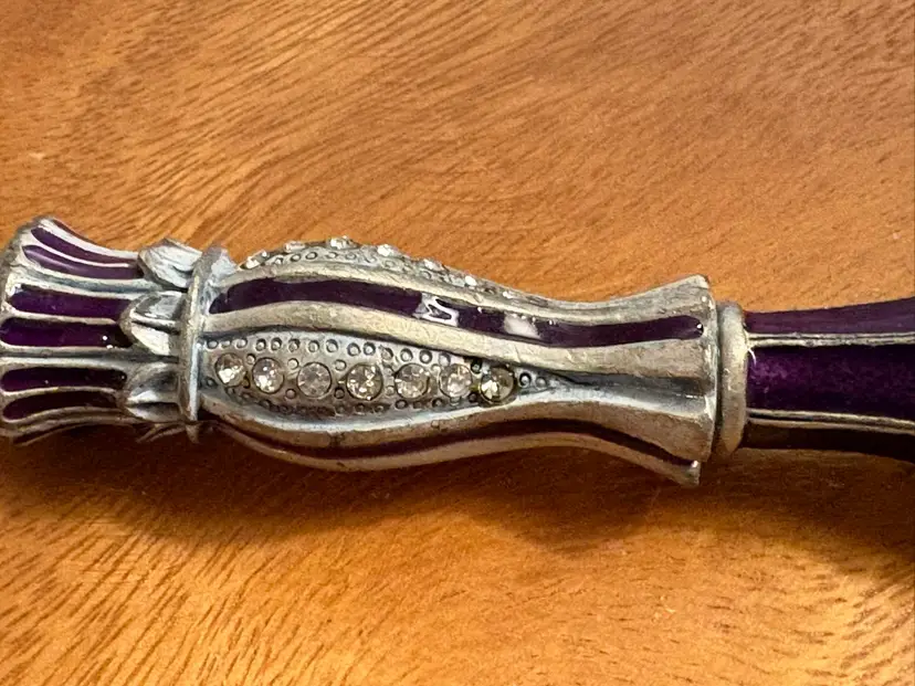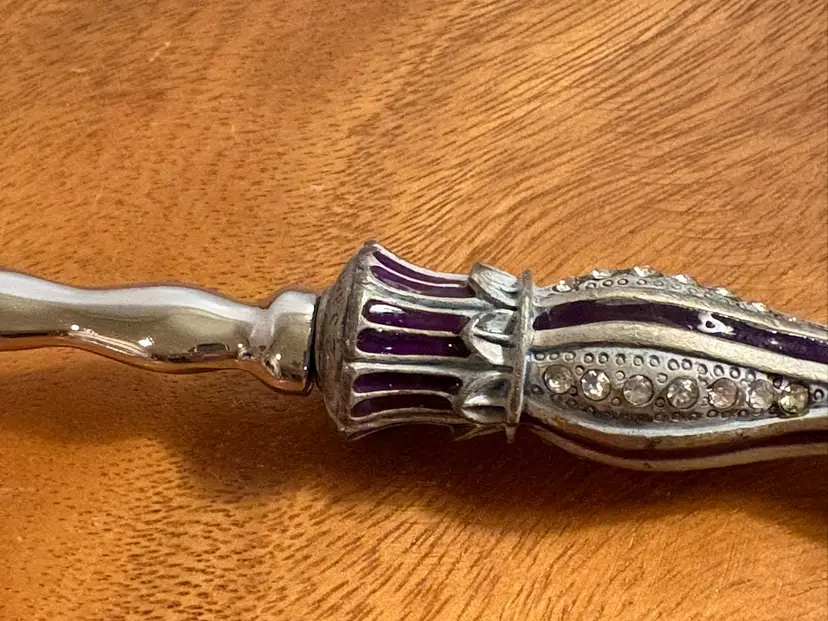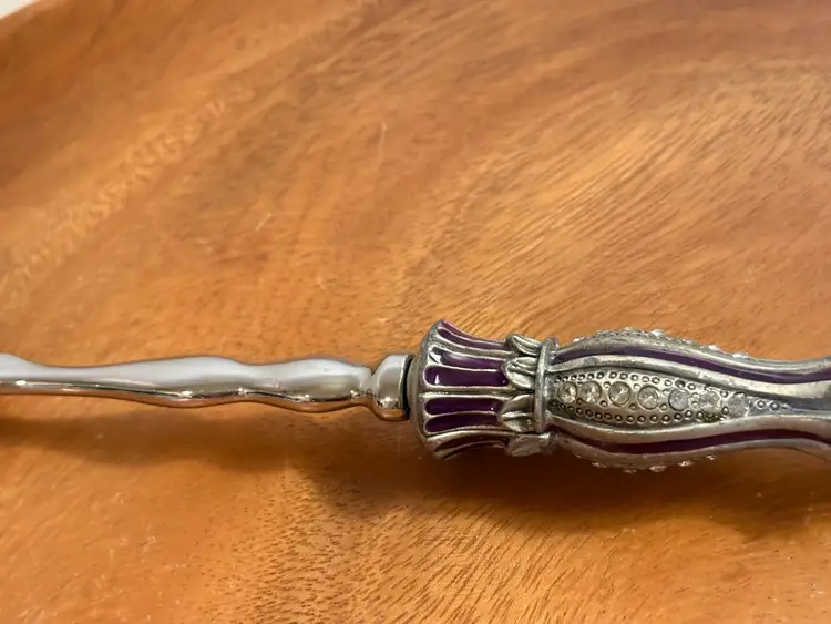 The Large Crystal Decorated Serving Spoon is a stunning piece of flatware that is perfect for adding a touch of elegance to any meal. The intricate crystal decoration on the spoon adds a luxurious touch, making it a standout piece in any silverware collection. This spoon is not only functional but also serves as a beautiful decorative item, making it a versatile and stylish addition to any dining table.