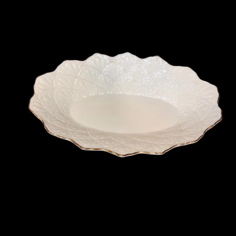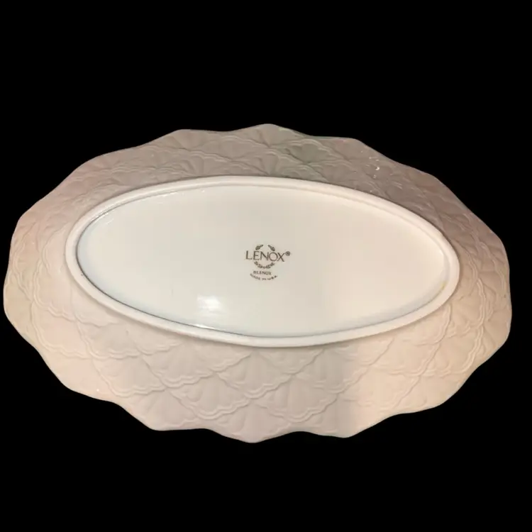 This Lenox Oval Bowl is a very graceful and attractive serving piece. It is in the traditional Lenox ivory bone china with a 24K gold rim. made in the late 1980’s in the USA