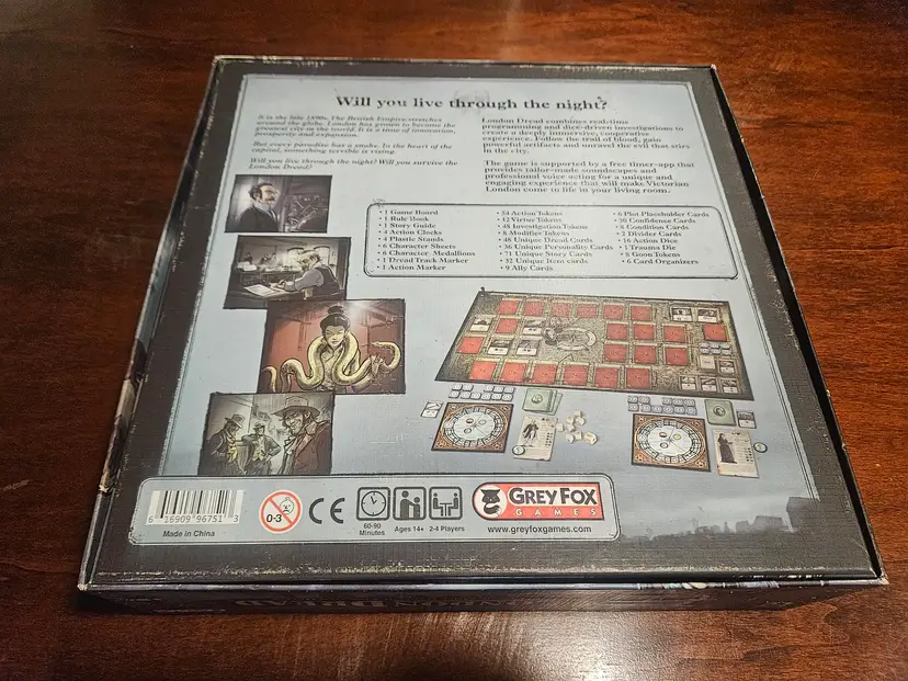 Players: 2-4 Playtime: 60-90 minutes Age: 14+ Designers: Snorre Krogh & Asger Johansen Publisher: Grey Fox Games Mechanics: Cooperative Programing Theme: Victorian Horror