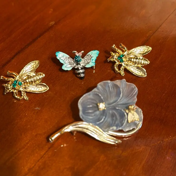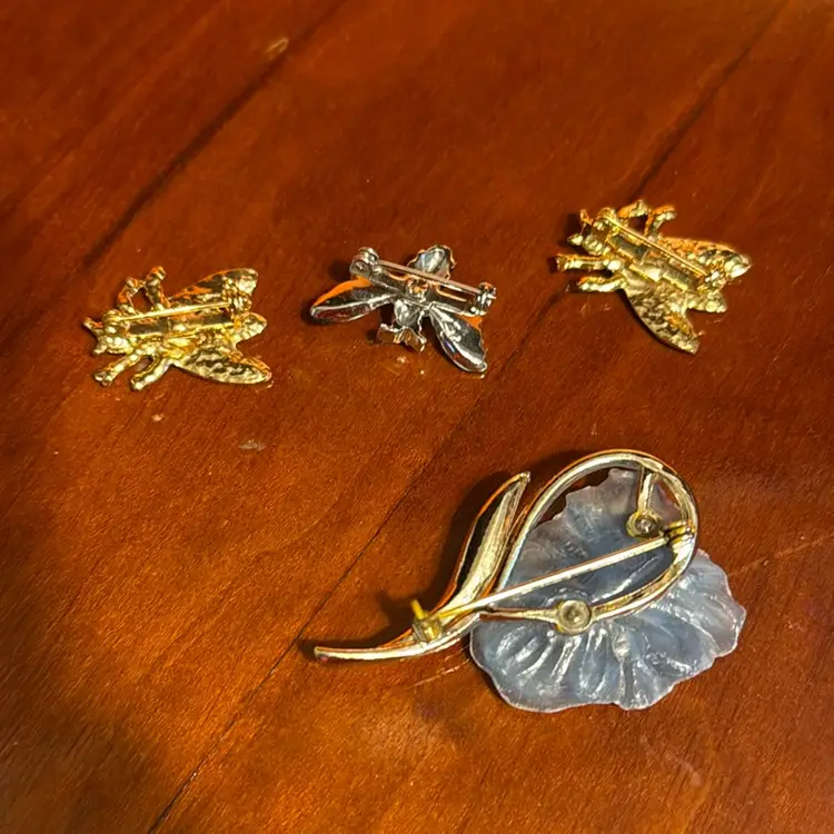 Adorable mini collection of insect themed pins....3 scatter pins and one that's a blue flower with a tiny bug on the petal. Good vintage condition.