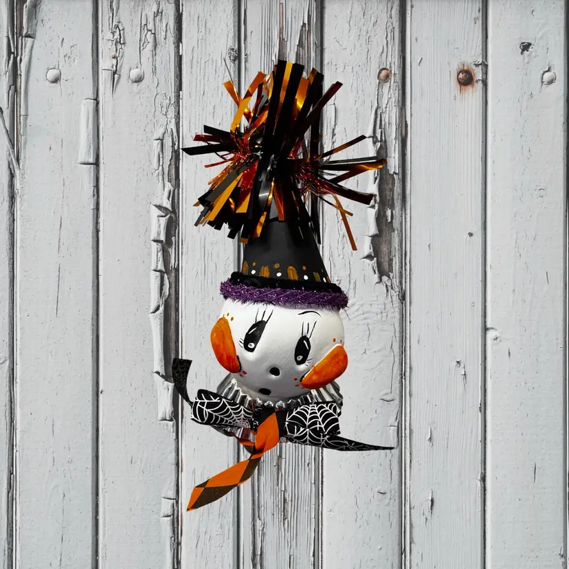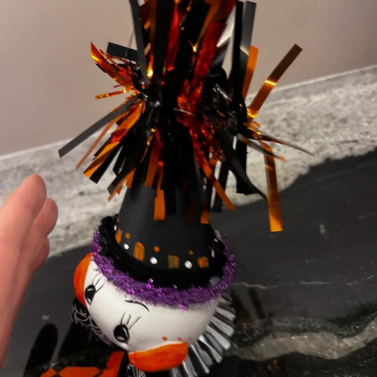 Table top decor approximately 7 inches tall made from clay foam. The bottom is a vintage tart tin. I sign all my work no two are alike.