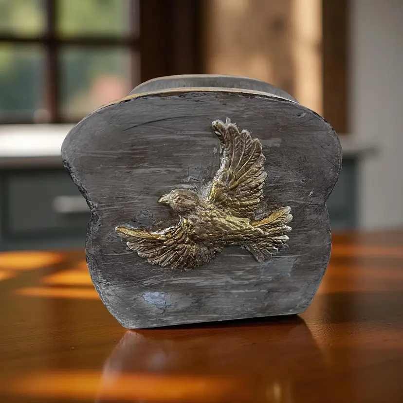 Hand painted by me I added the birds on both sides Approx 5” tall Chippy distressed
