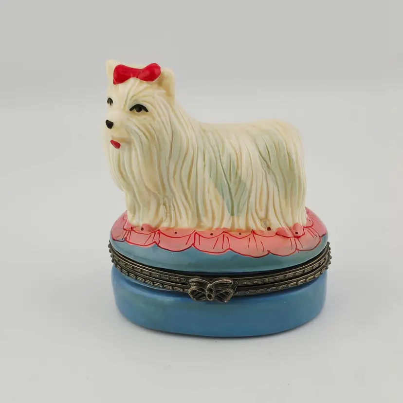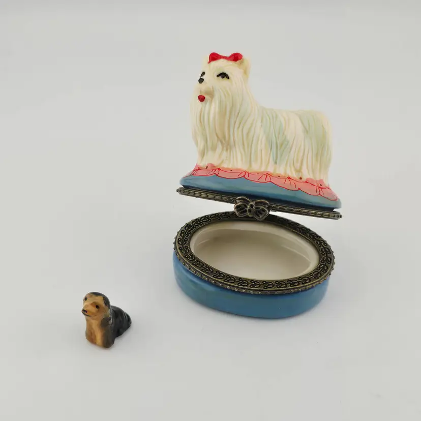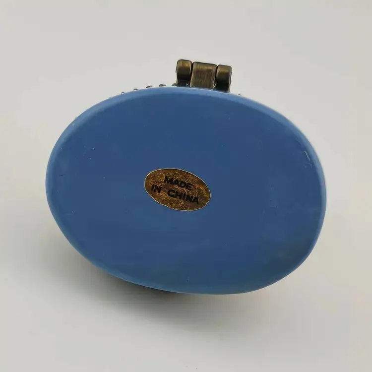Don't know of the Trinket is original. 2.75 inches tall. Trinket is underneath 1 inch. No chips or cracks.