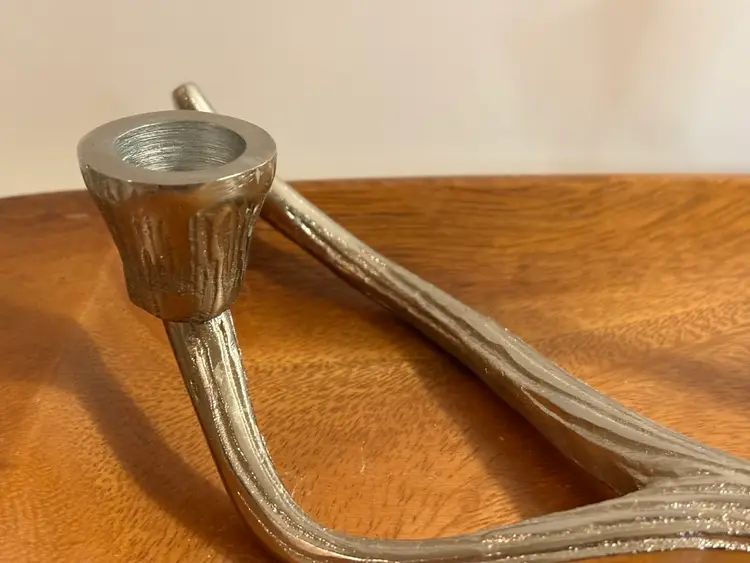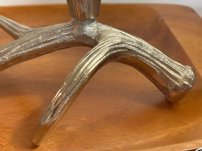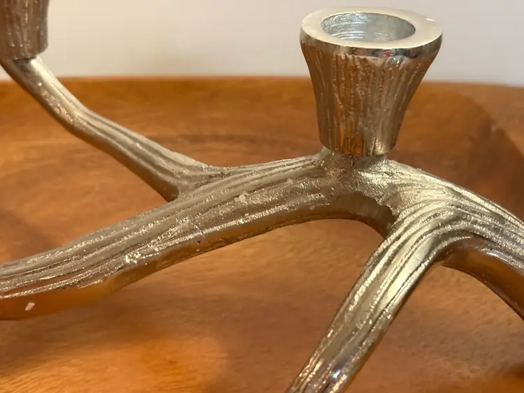 This is an aluminum antler or branch-style three-light candelabra or candle holder, often made by brands like Arthur Court Designs.