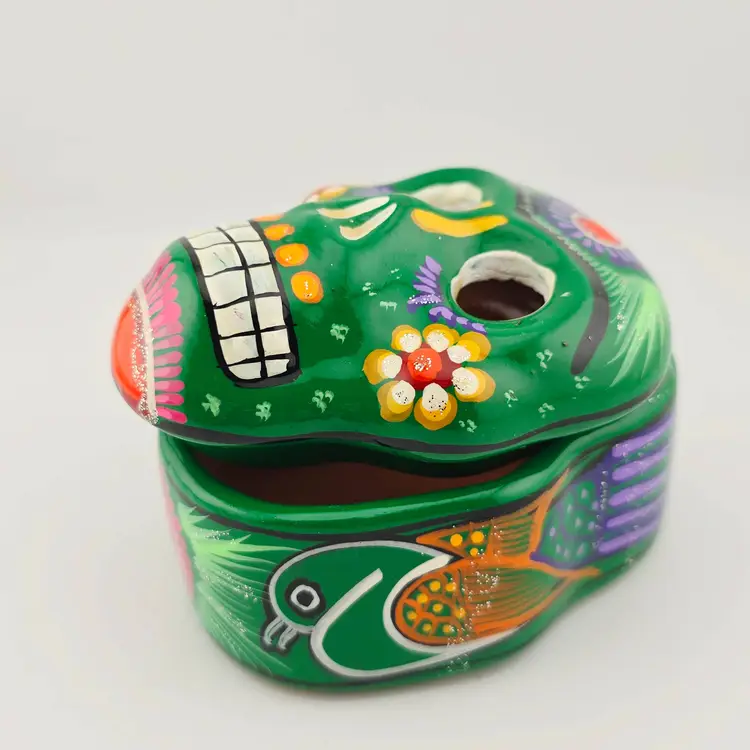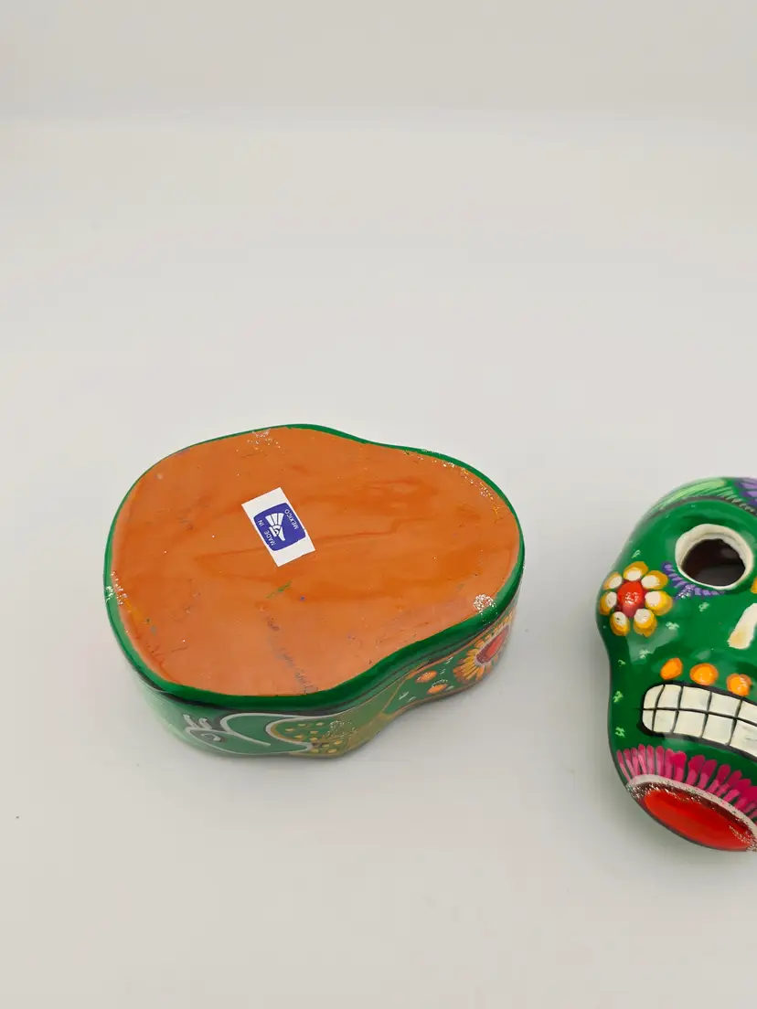 Mexico Green Sugar Skull Painted Trinket Box