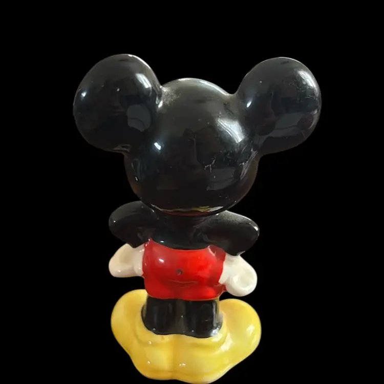 Adorable Mickey Mouse ceramic figure, Walt Disney productions, Japan No chips or cracks, has paint loss as seen. 1.5x3”