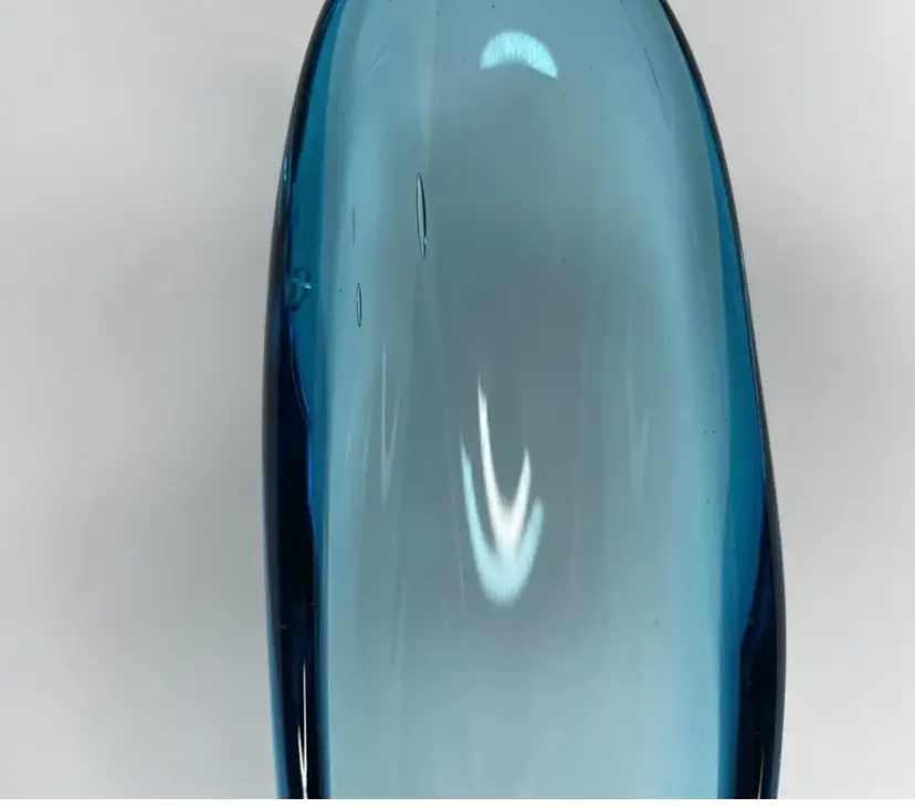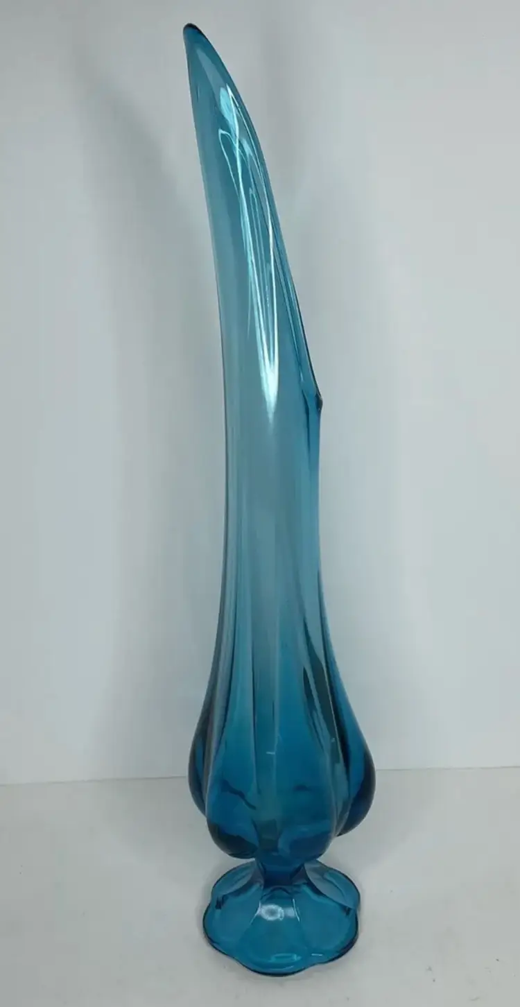 Mid Century Modern LE Smith Swung Stretch Glass Pedestal Vase Aqua Blue 20” MCM