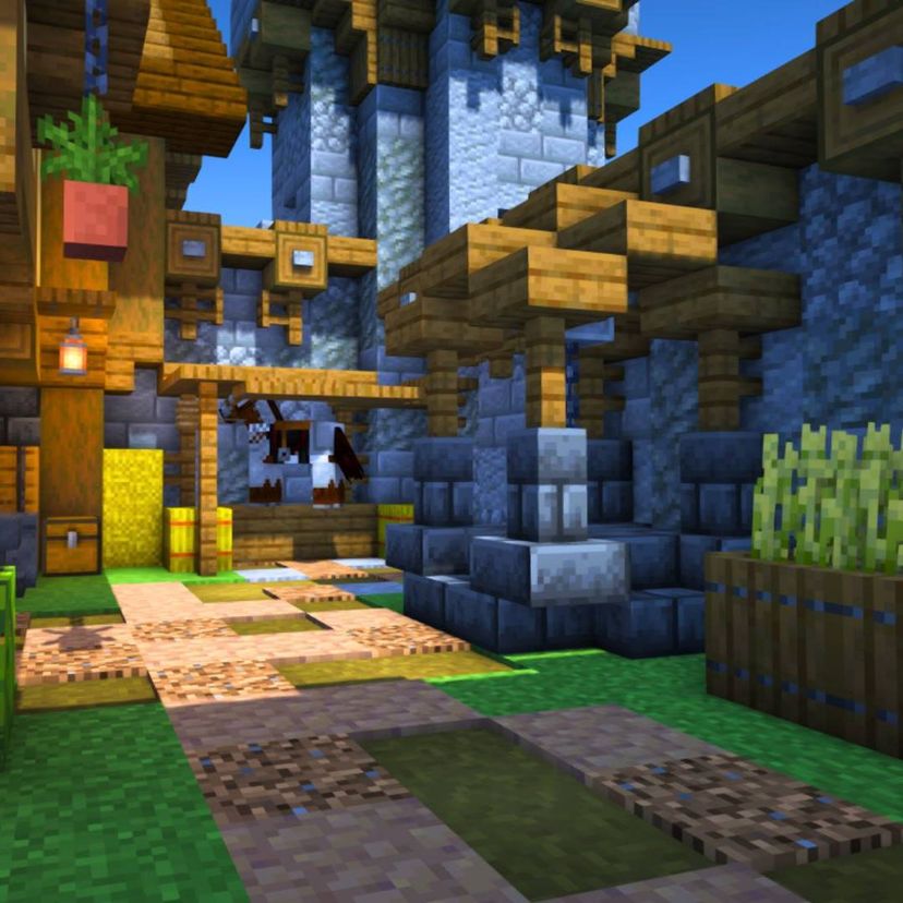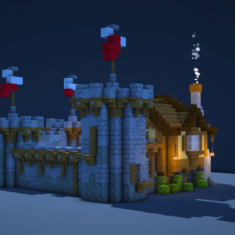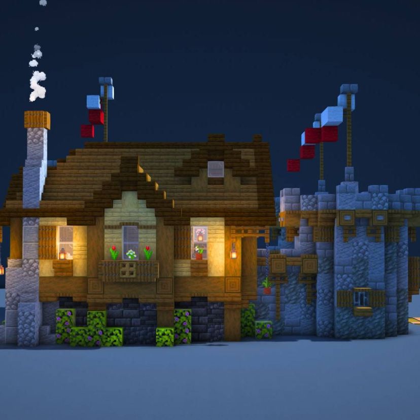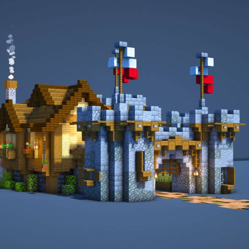 Key feature(s): • Weathered stone towers • 2 story wooden house built into castle walls • Fully furnished house interior • Fully furnished castle courtyard with: • Well • Wheat farm • Horse stable