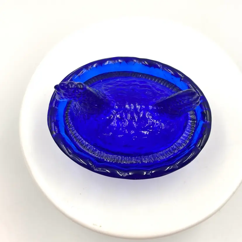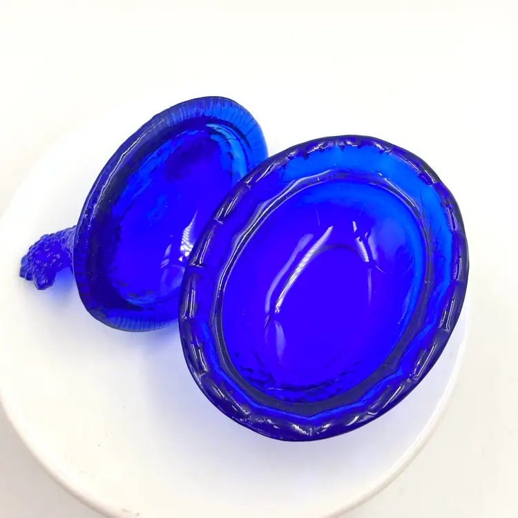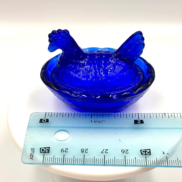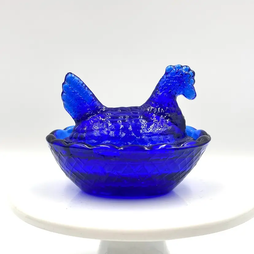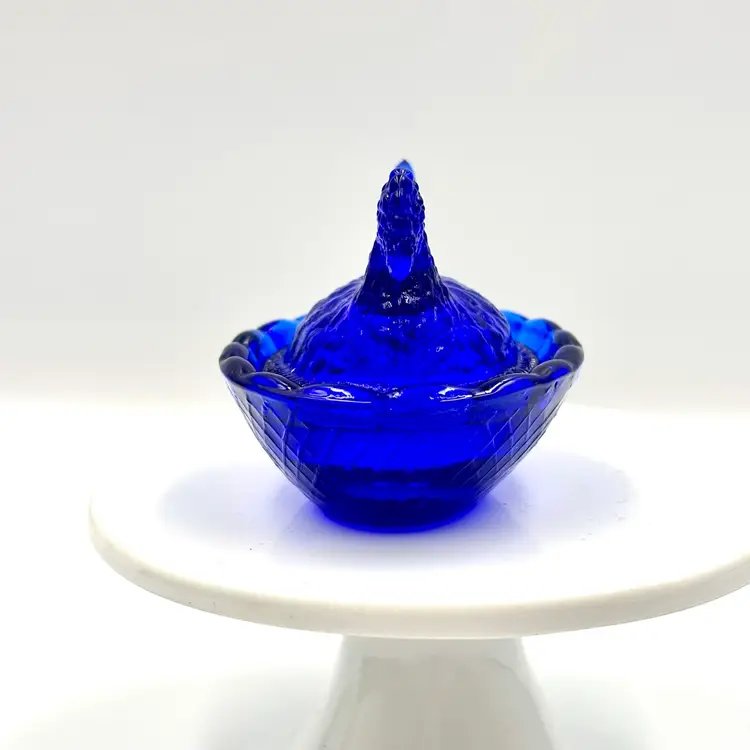 Mini Cobalt Blue Glass Hen On Nest 1.5”x2.5”