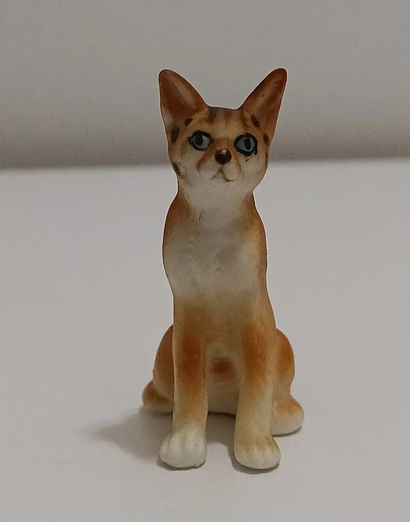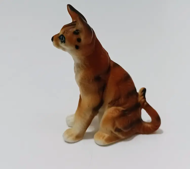 Miniature Bone China Sitting Tiger Cat; Excellent Vintage Condition; 2.75" T x 2.75" L x 1" Across Base