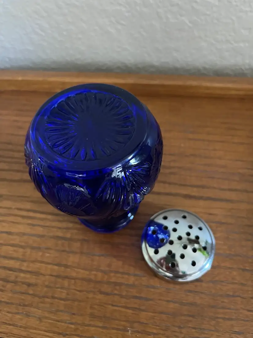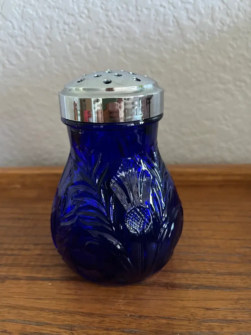 Single 2010 Mosser Glass Powdered Sugar Shaker in excellent condition. It is in the Cobalt Blue color and the pattern is "Inverted Thistle". (This is perfect for French Toast...)