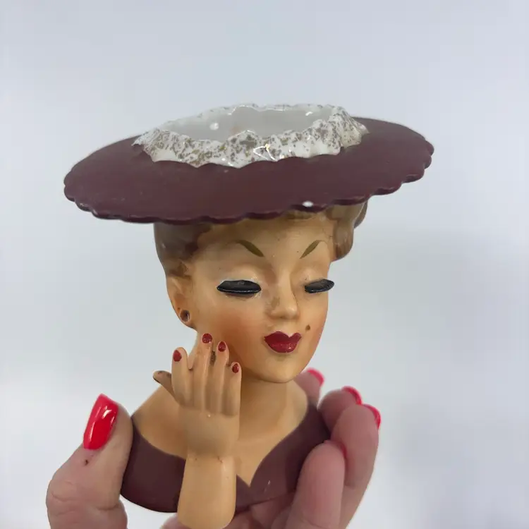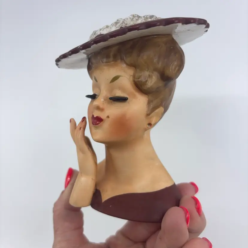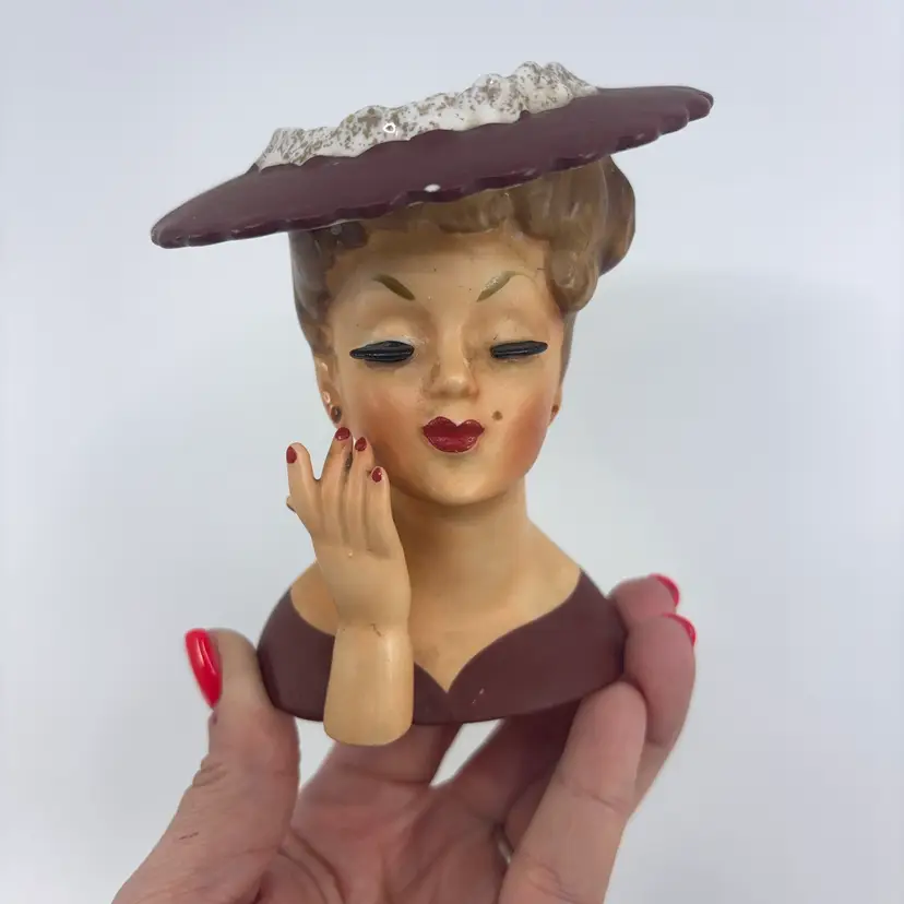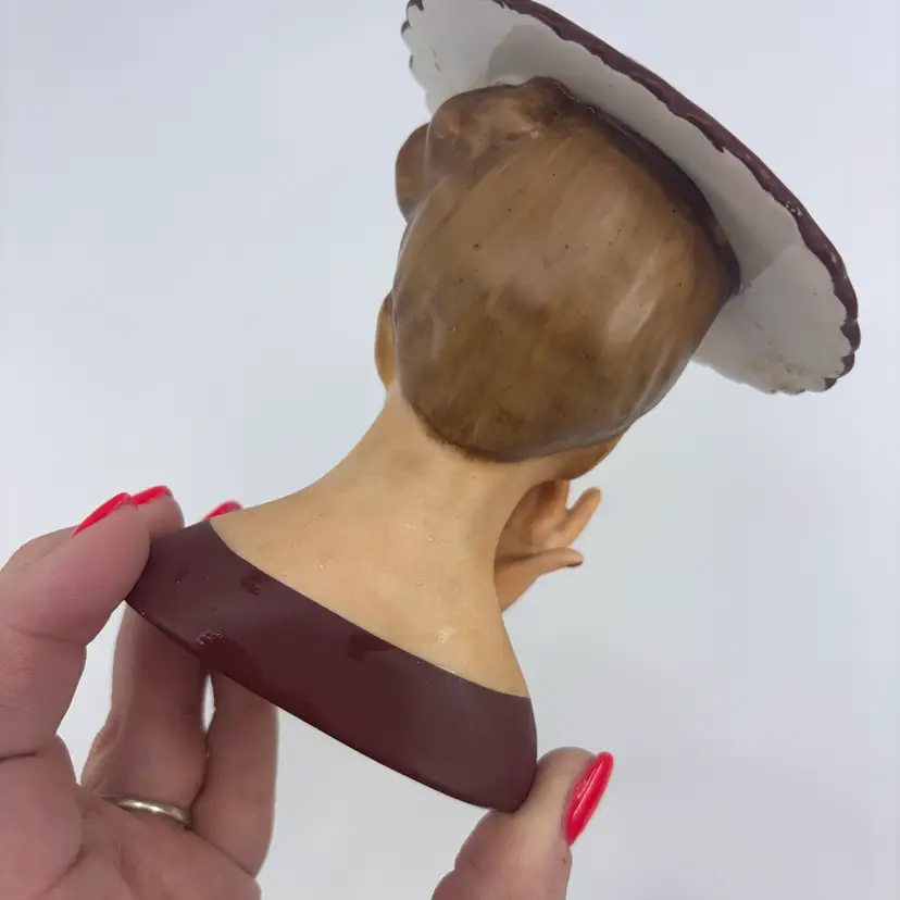 Missing earrings - sold comps around $70-80 - priced to reflect condition. Small chip on front of hat can be filled in with paint