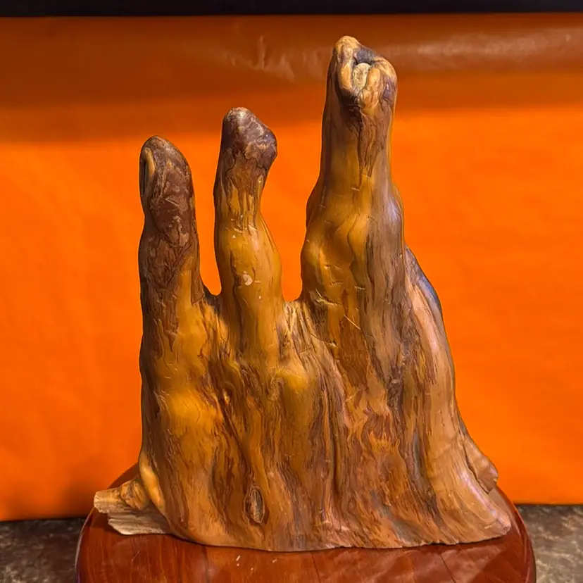 This is a natural cypress knee wood sculpture, often used as a mid-century modern home decor item. The unique shapes are formed from the root extensions of bald cypress trees, which grow above the water or ground in the southeastern United States.