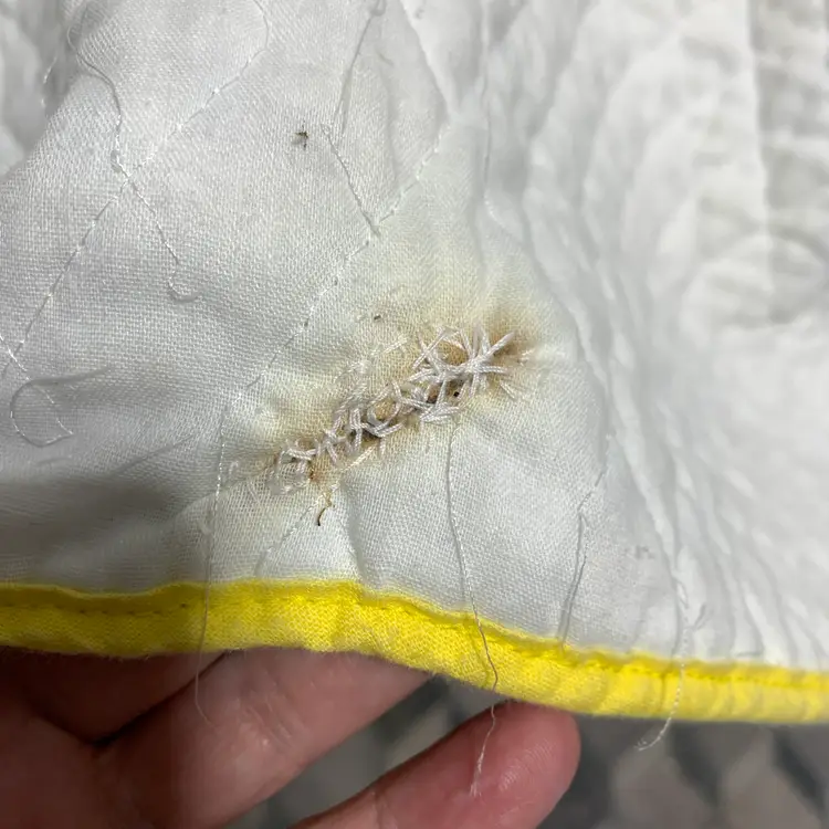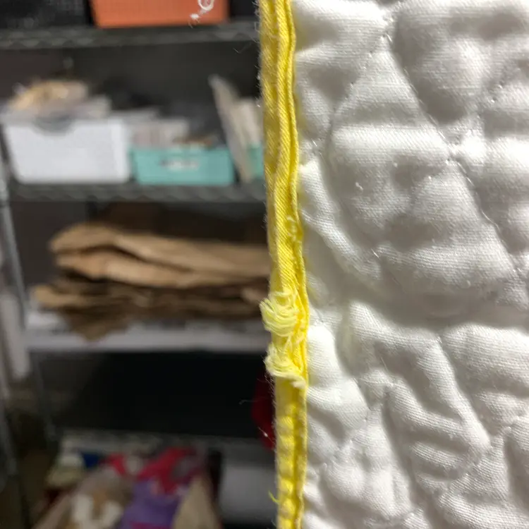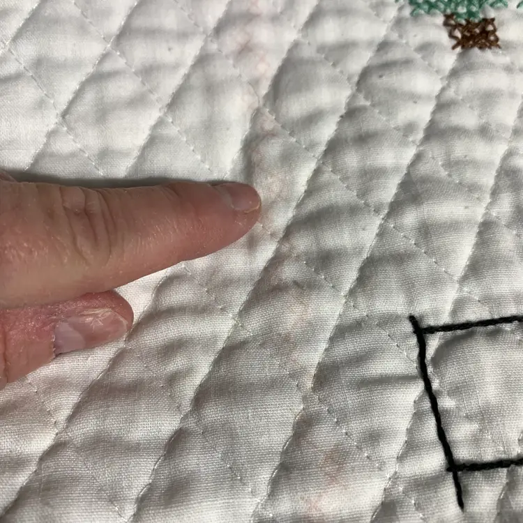 This has been washed and dried. The person that did the stitching did not stitch the border and there is a repair. I have included photos of all of these issues. Measures 32 inches by 55 inches. Weighs 18 ounces. If the actual postage ends up being less than what you paid, you will be refunded for anything over one dollar.