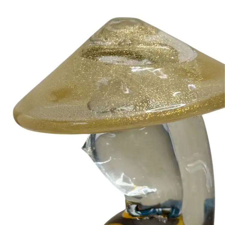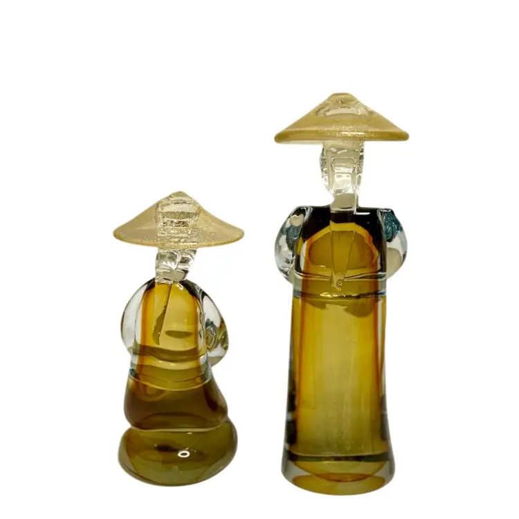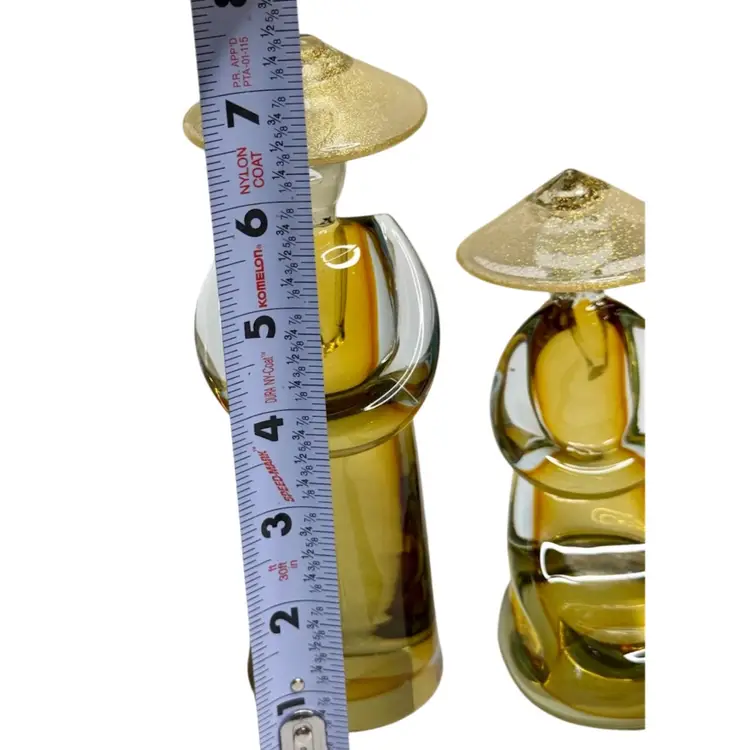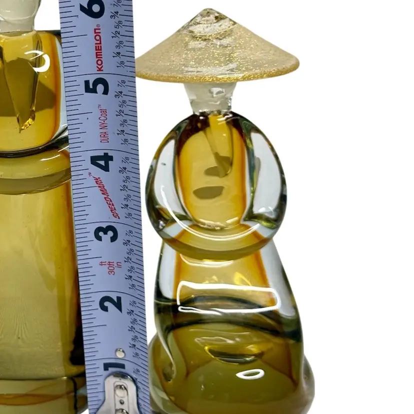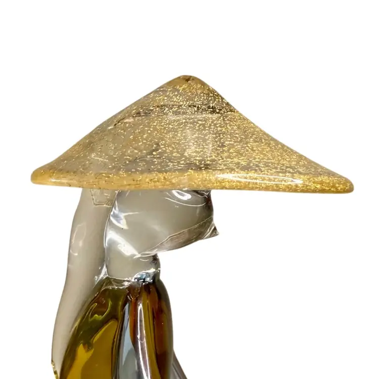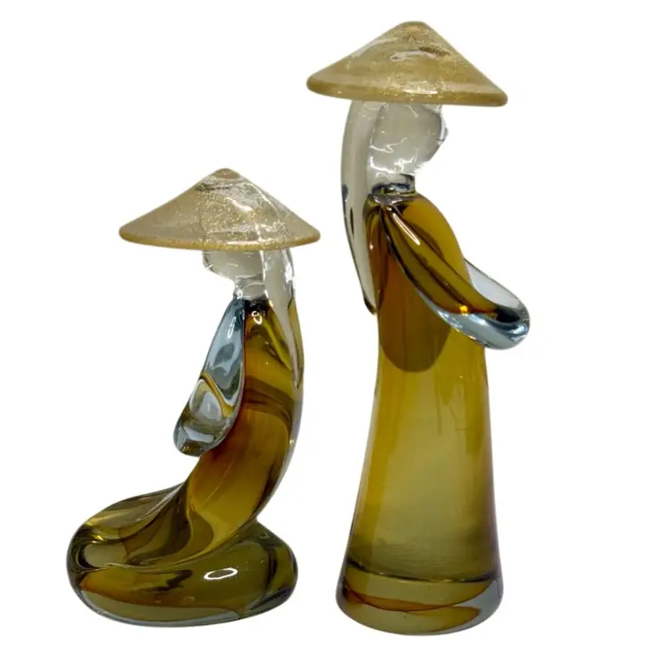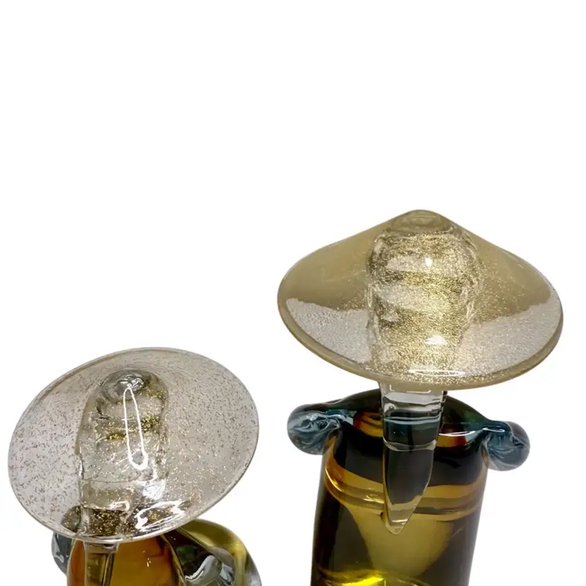Pair of Murano Glass Asian Figurines Amber Sommerso-Gold Aventurine Hats READ 7-1/2” T & 5-3/4” T