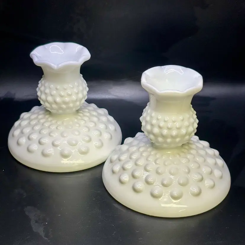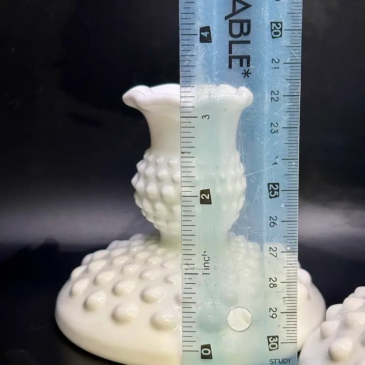 Pair Of White Milk Glass Hobnail Candleholders 3.5โ€