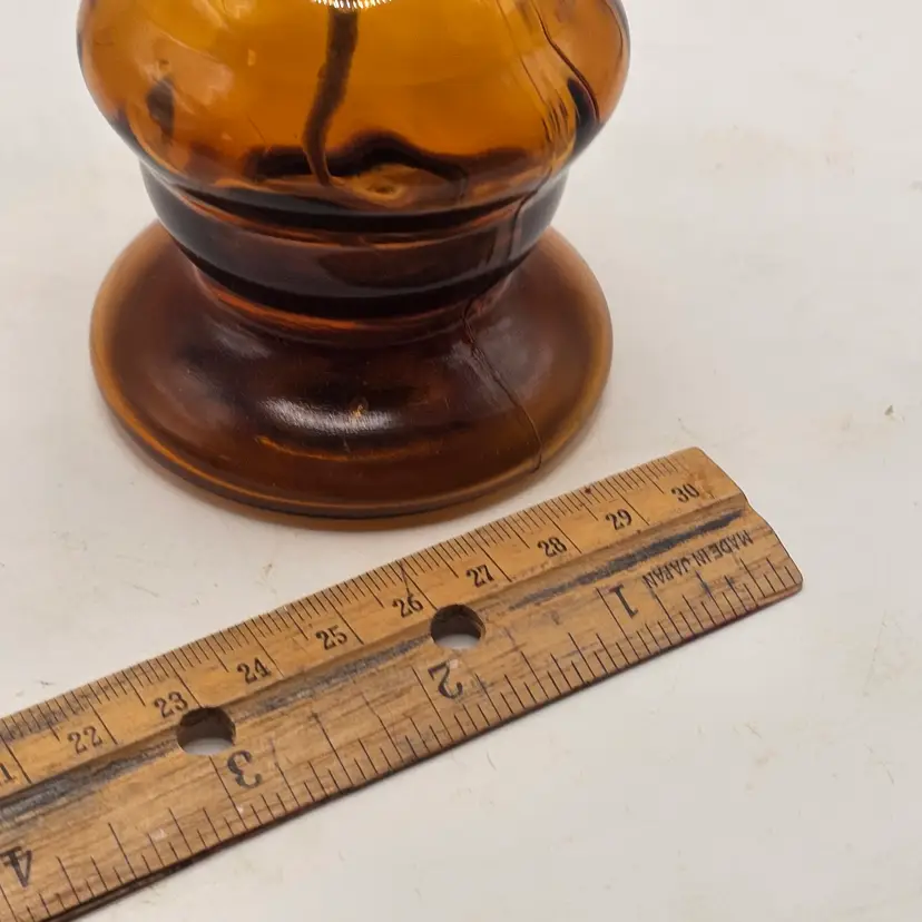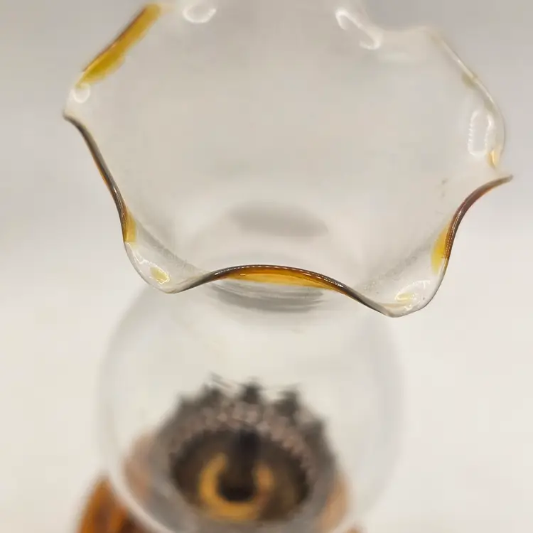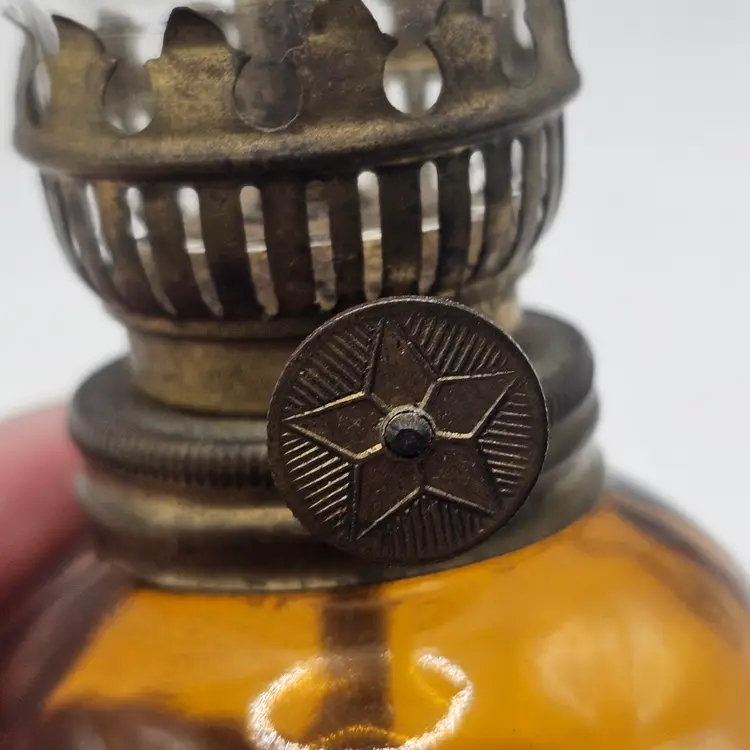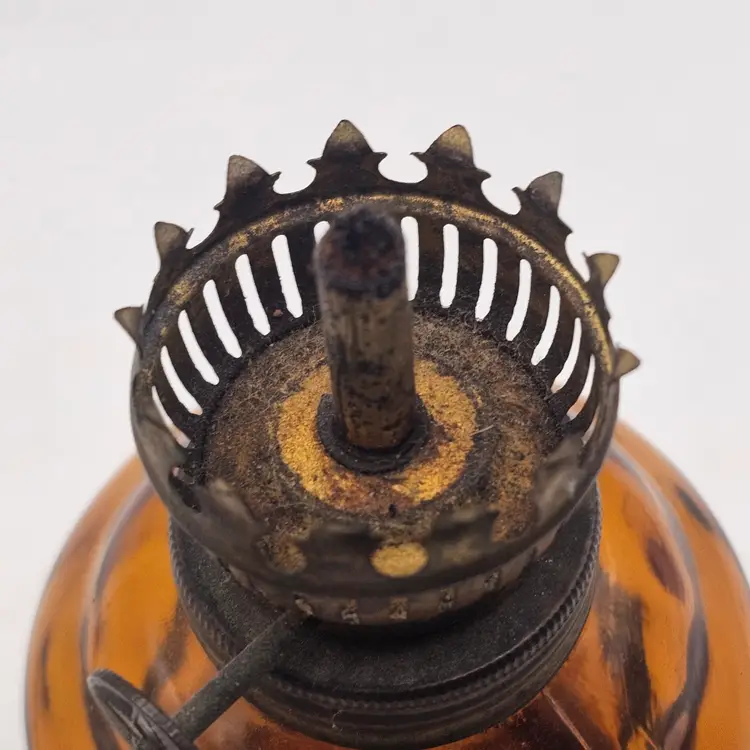 Peacock oil lamp vintage amber glass