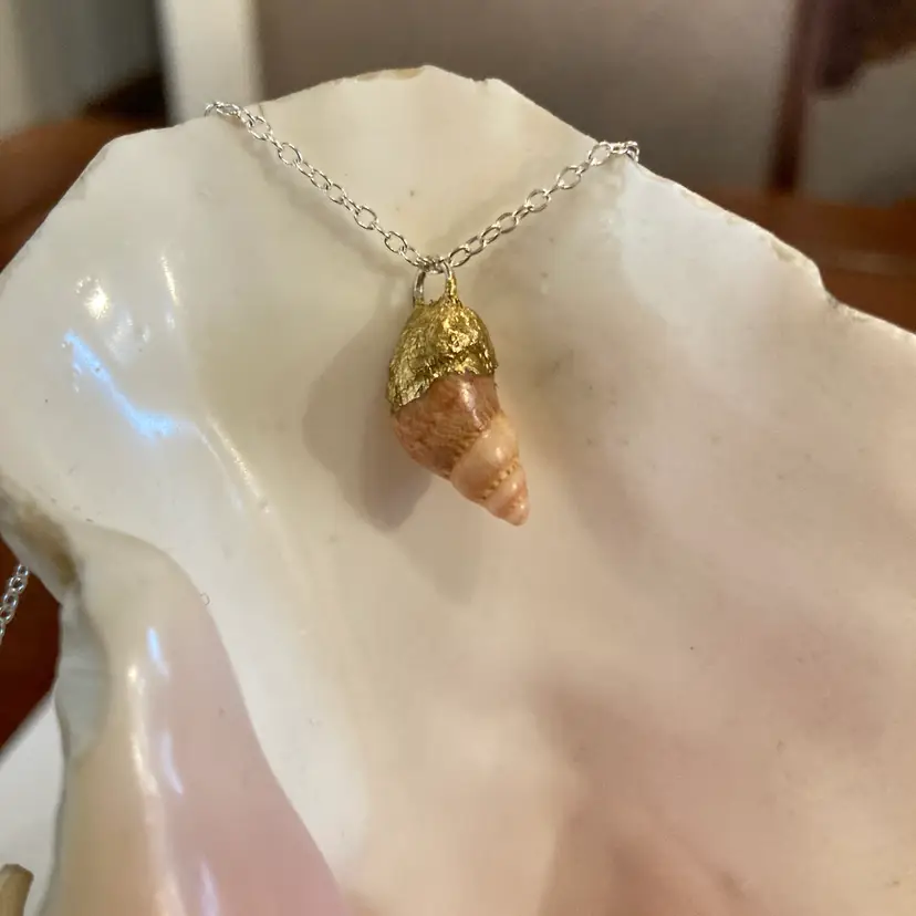 Wear a slice of the ocean with this charming periwinkle pendant. At a petite 3/8" x 3/4", this sea shell necklace is the perfect size for layering or solo styling. Each piece is uniquely made, so you're getting nature's own one-of-a-kind design. Perfect for beach lovers, shell enthusiasts, or anyone who wants a little coastal magic in their jewelry box. A delightful gift that brings seaside vibes wherever you go.