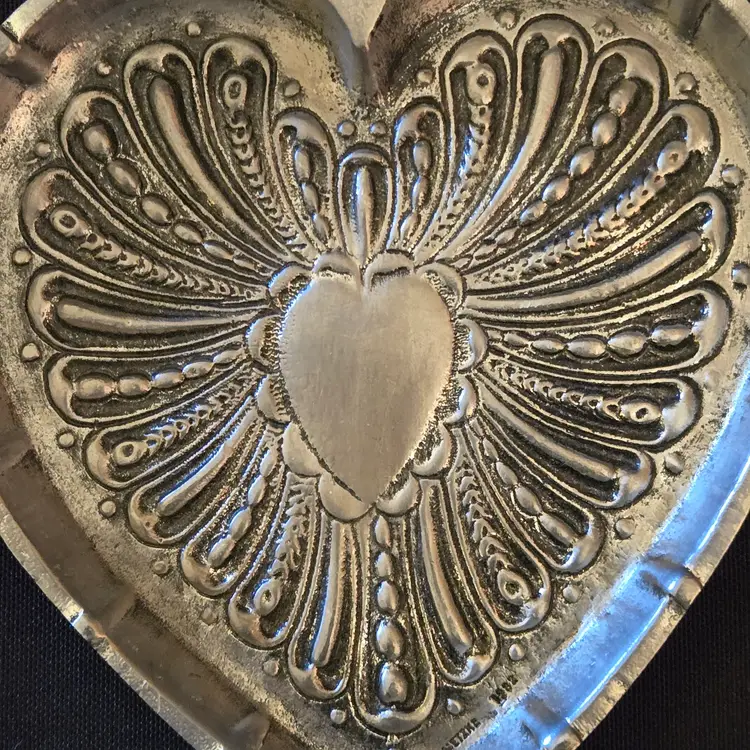 Pewter Heart Trinket Dish Metzke 1982 Intricate Ornate Design 4" wide Vintage. Used condition with no apparent issues that I can see. Please view all the photos and please ask any questions prior to purchase when possible.