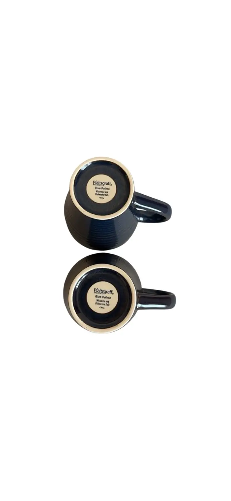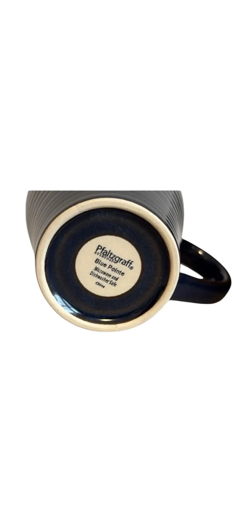 Pfaltzgraff Everyday Mugs Ribbed Design Stoneware Blue Pointe Microwave & Dishwasher Safe Set of 2 Measure approximately 4.5”H x 3.5”D Excellent condition!
