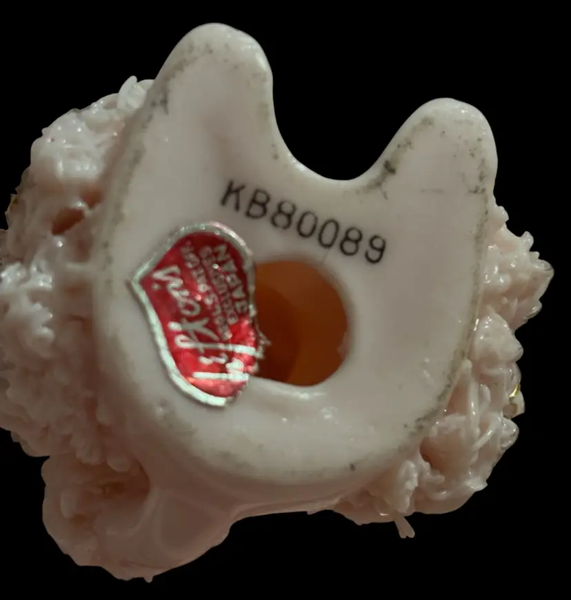 These collectible ceramic figurines are known for their distinctive textured "spaghetti" trim and kitschy mid-century design.
