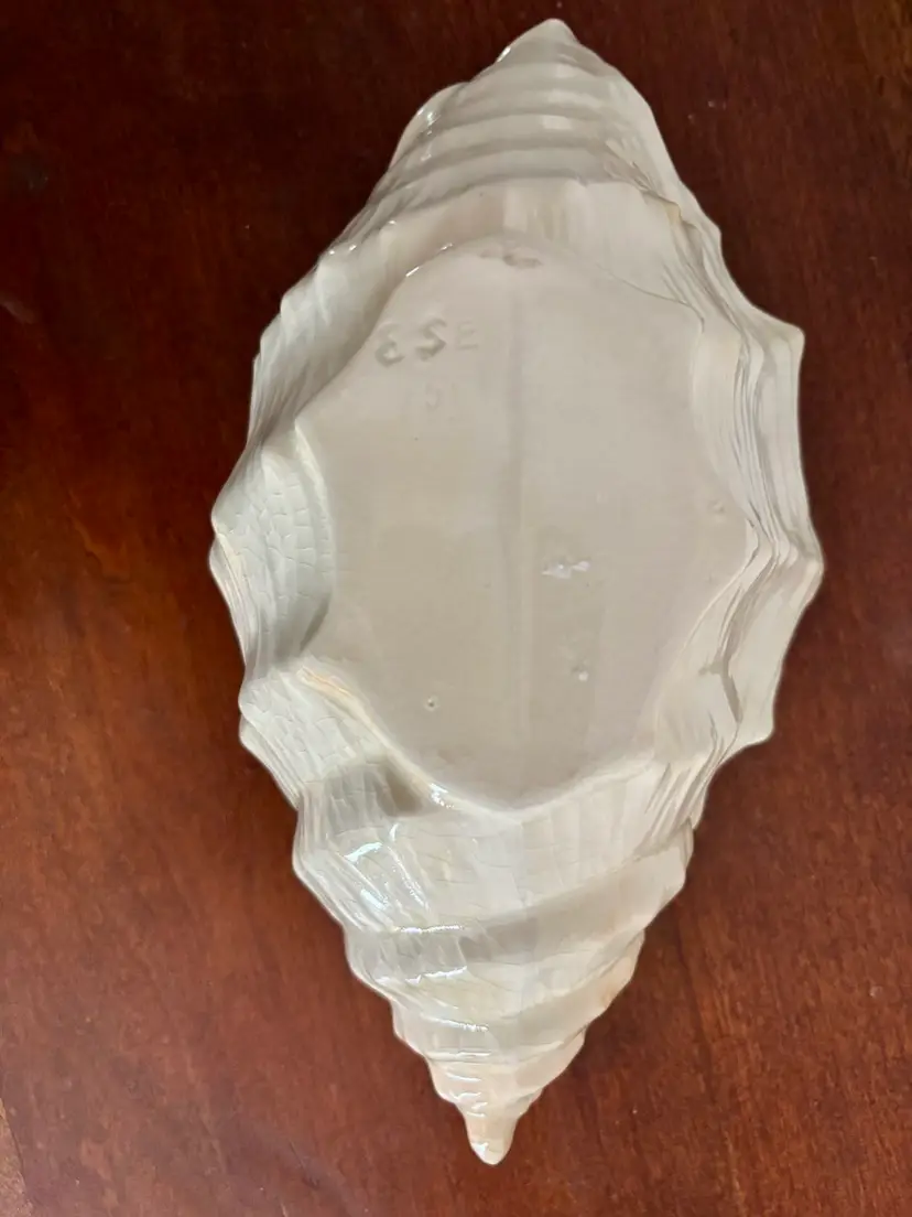 Approx. 10.75” x 5.5” Decorative conch shell Porcelain lusterware finish Can be used as a serving dish, decorative item or even a planter Great condition
