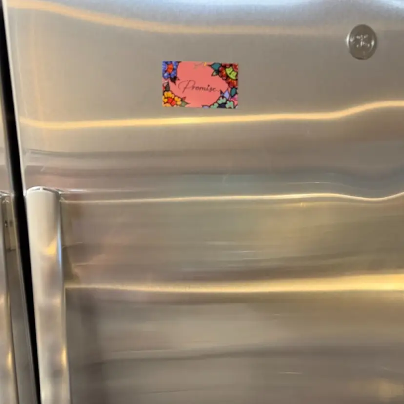 This 2 inch by 3 inch Promise. magnet features vibrant floral artwork with the signature Promise. script and heart detail—designed to live where you’ll see it every day: your fridge, locker, office board, or mirror.