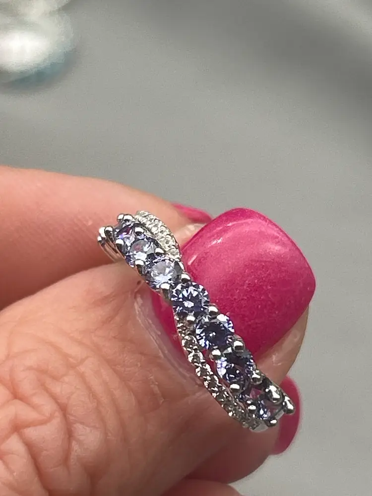 • Stamped YCJ 925 (designer mark + sterling silver) • Presidium tested – genuine gemstone reading • Purple / lavender gemstone color (exact species unverified) • Sparkling band with clear accent stones • Elegant, stackable silhouette • Part of the Promise. Collection