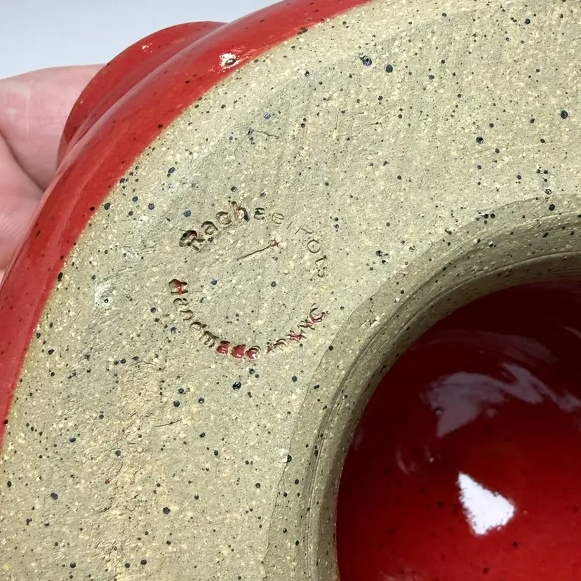 Rachael Pots Handmade Pottery NYC Red Speckled Citrus Juicer Signed Culinary
