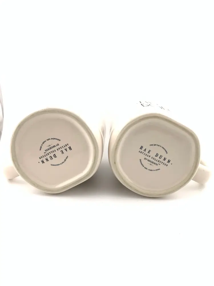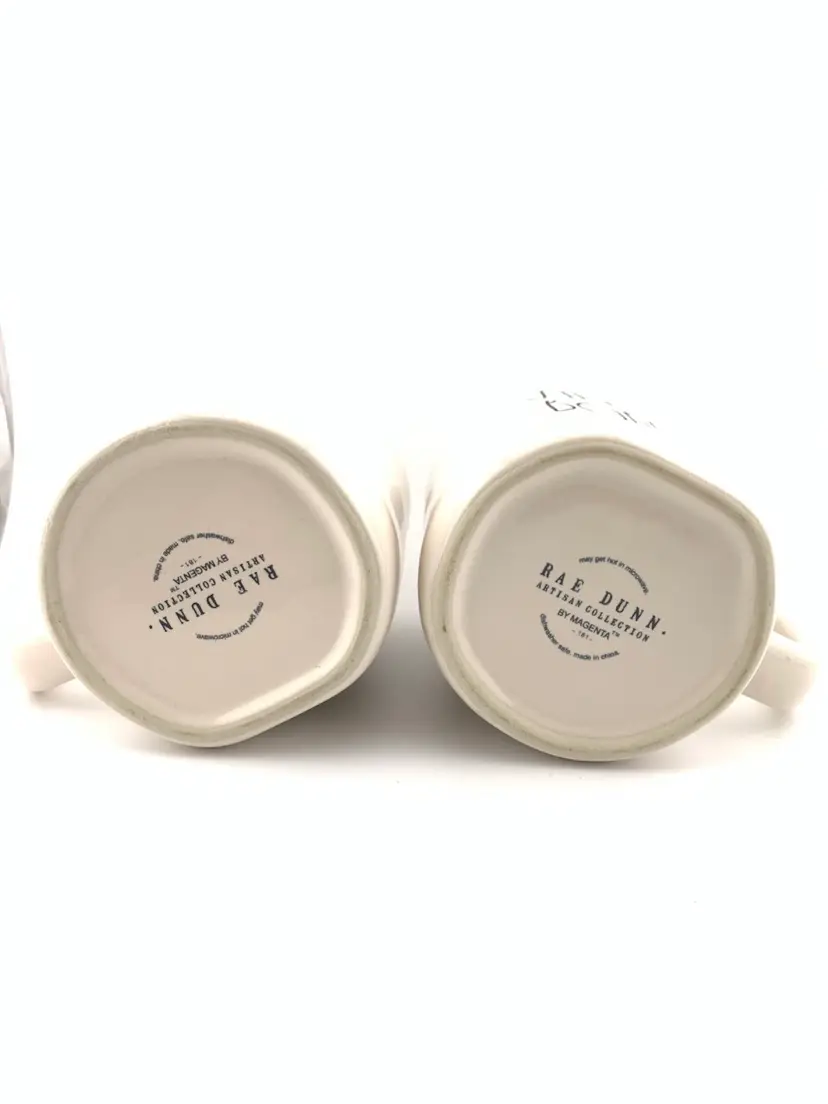 Both of these dog owner themed Rae Dunn mugs are in excellent condition with no cracks or chips. Measure 4 1/2” high with the opening being around 3 1/2” across. Hard to get an exact measurement across as the mug is purposely smooshed looking. I ship promptly so you still have time to pick up this neat set for the dog parent in your life.