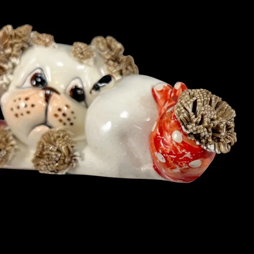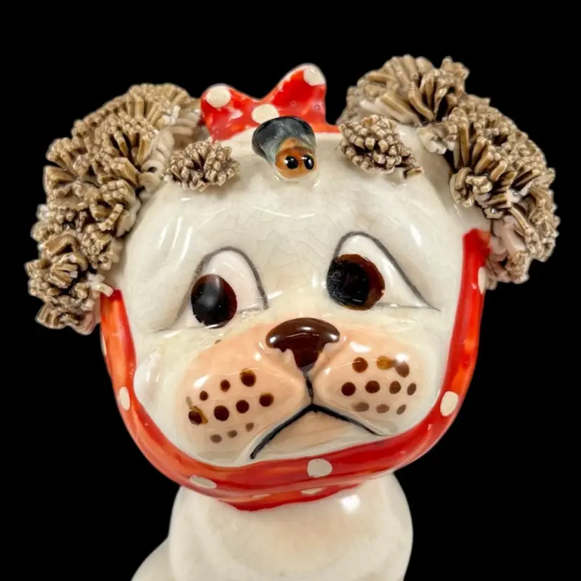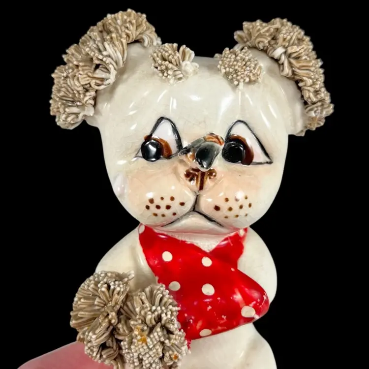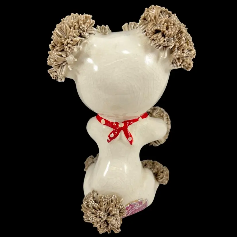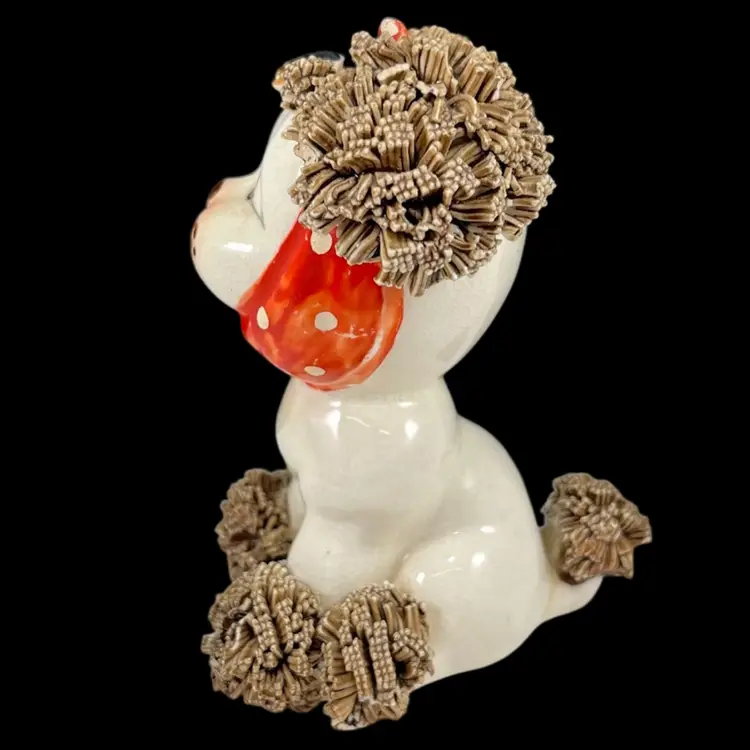 *Read* Set Of Three Vintage Lefton Spaghetti Dogs With Bees And Bandages, Lefton Sad Poodle Puppies With Bandages And Bug, Lefton Porcelain Spaghetti Puppies, Vintage Lefton Dog Figurines, Set of 3 Vintage Lefton Spaghetti Puppy Dog Figurines – Red Bandana Series
