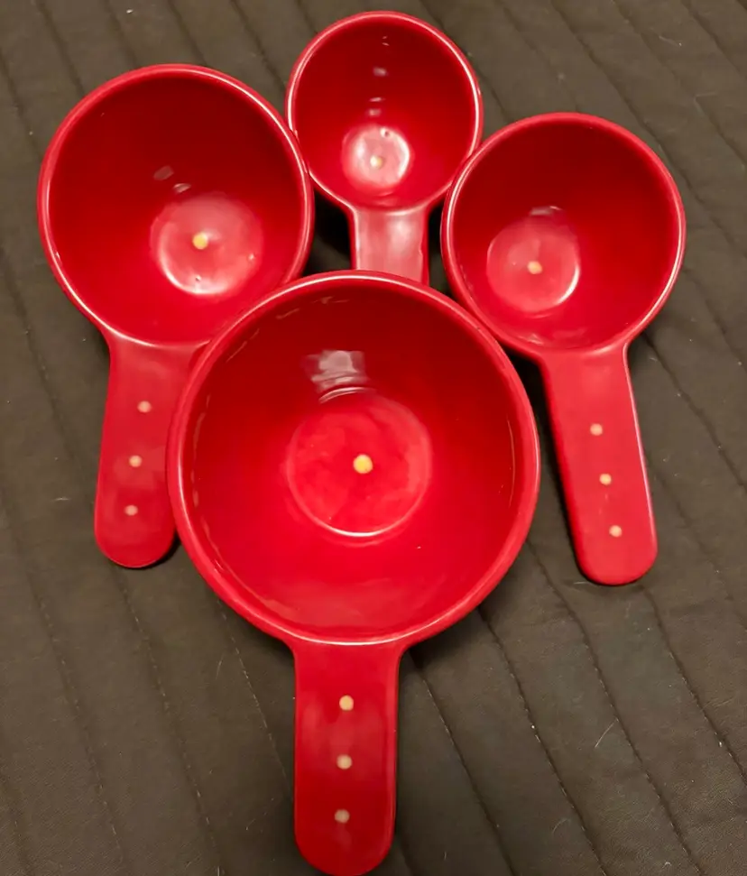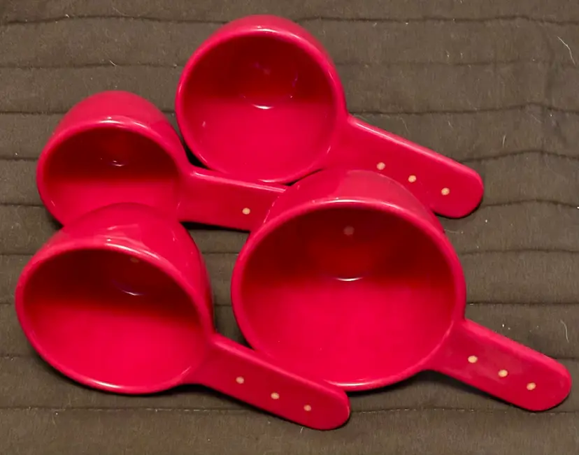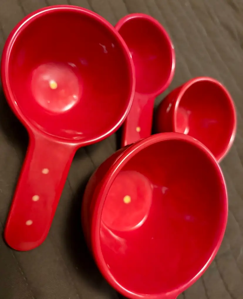 Red ceramic measuring cups with polka dots No chips or cracks