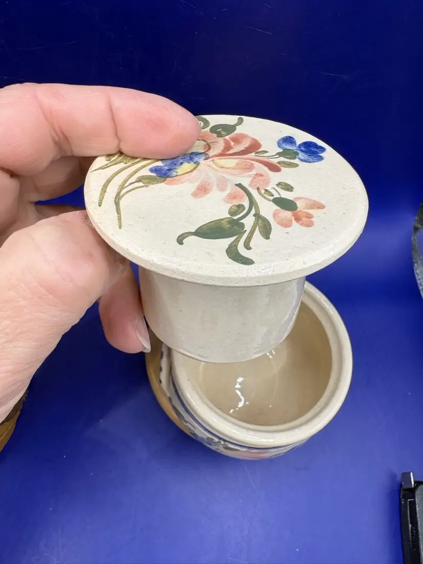 Remmy Fils Betschdorf Butter Bell French stoneware As name describes this is meant to hold butter Measures 2 1/2 inches tall and 3 1/4 inches at widest No chips or cracks however some crazing due to age