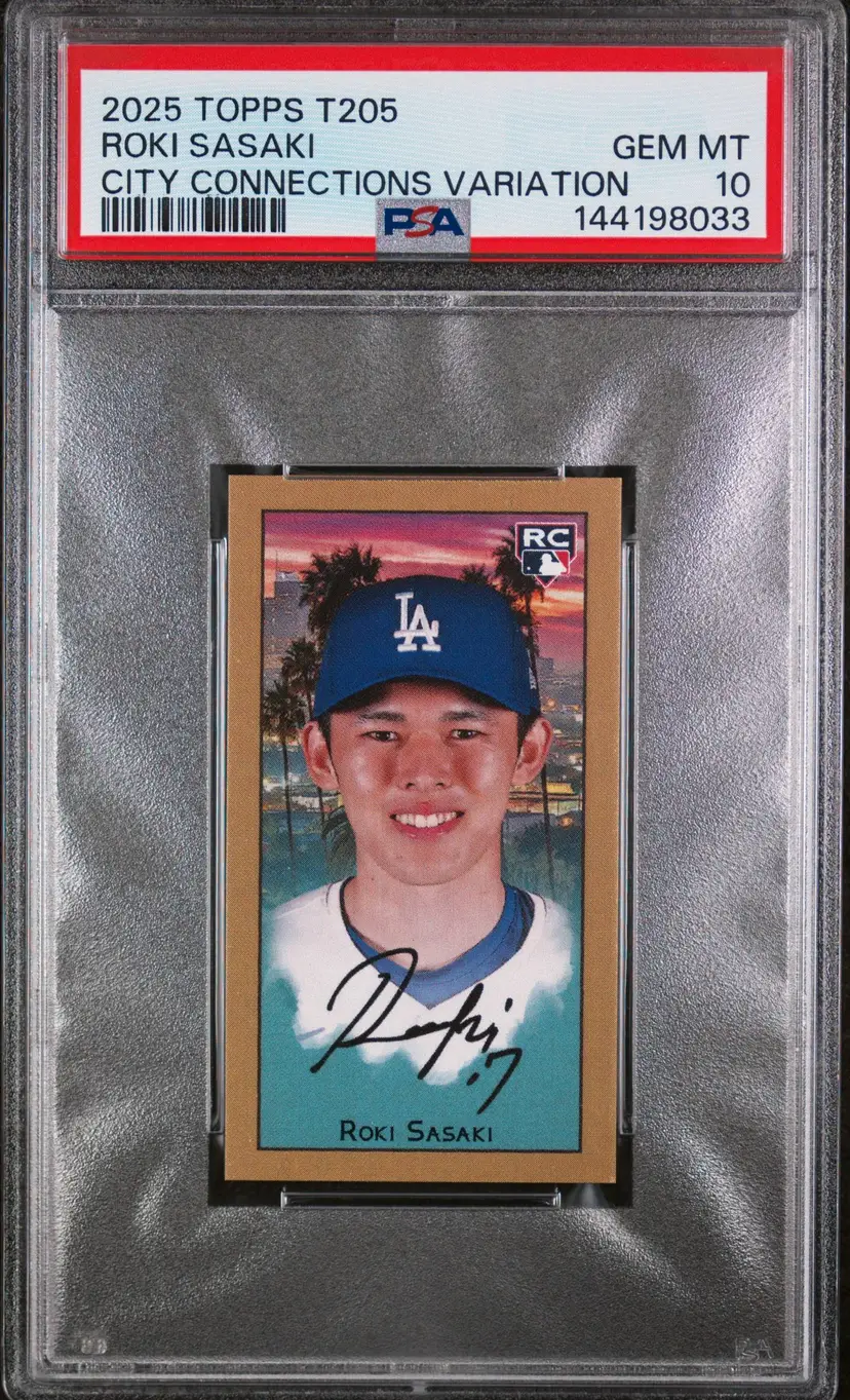 Check out this Roki Sasaki City Connections Variation card from the 2025 Topps T205 series. A gem for any collector or fan.