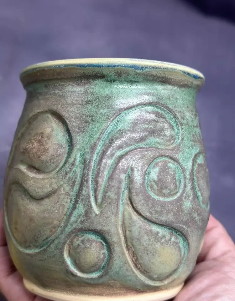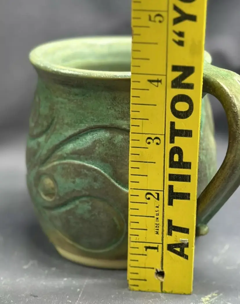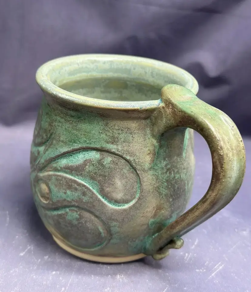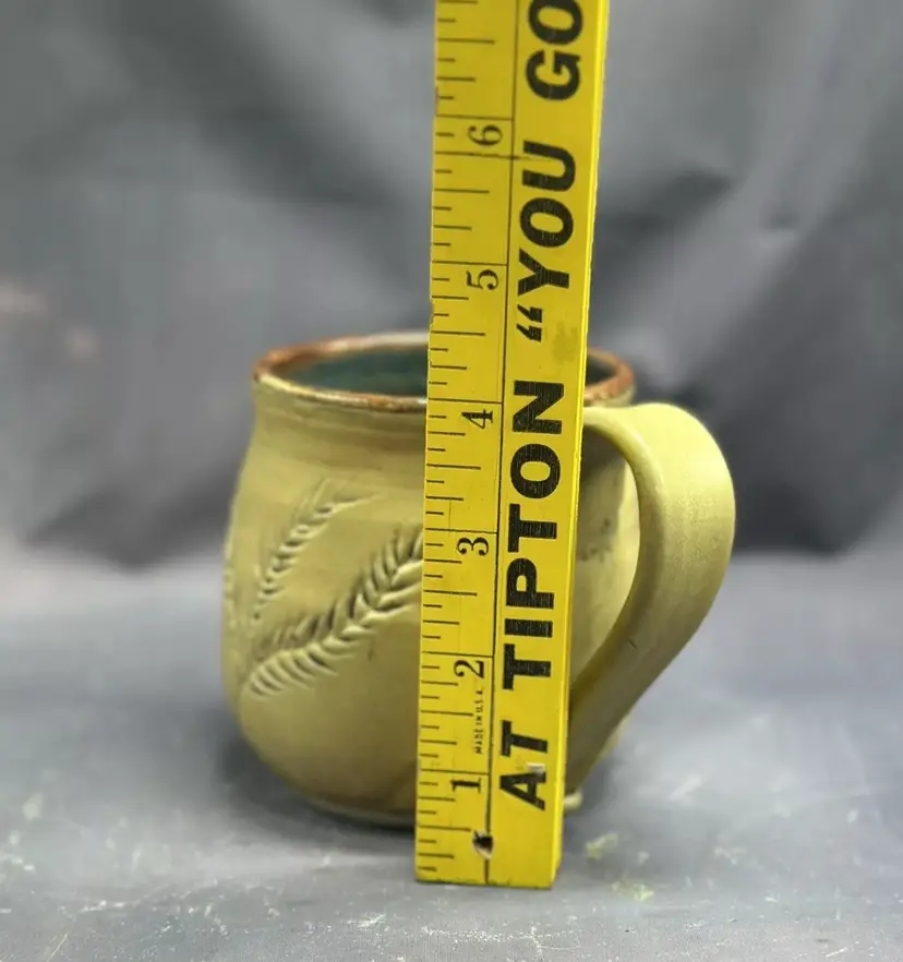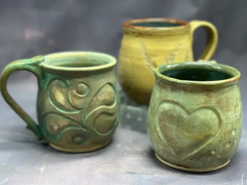 Beautiful set of 3 Art Pottery coffee cups / mugs Crafted by same Artist / signed Unused No damage Smoke free seller