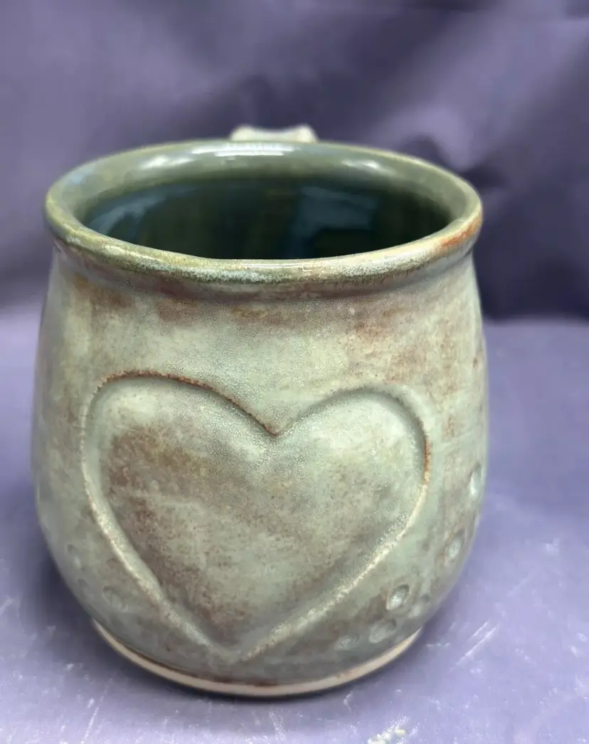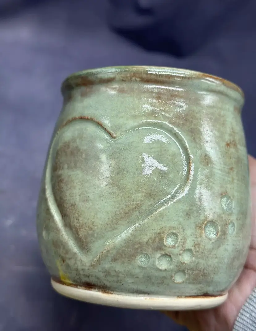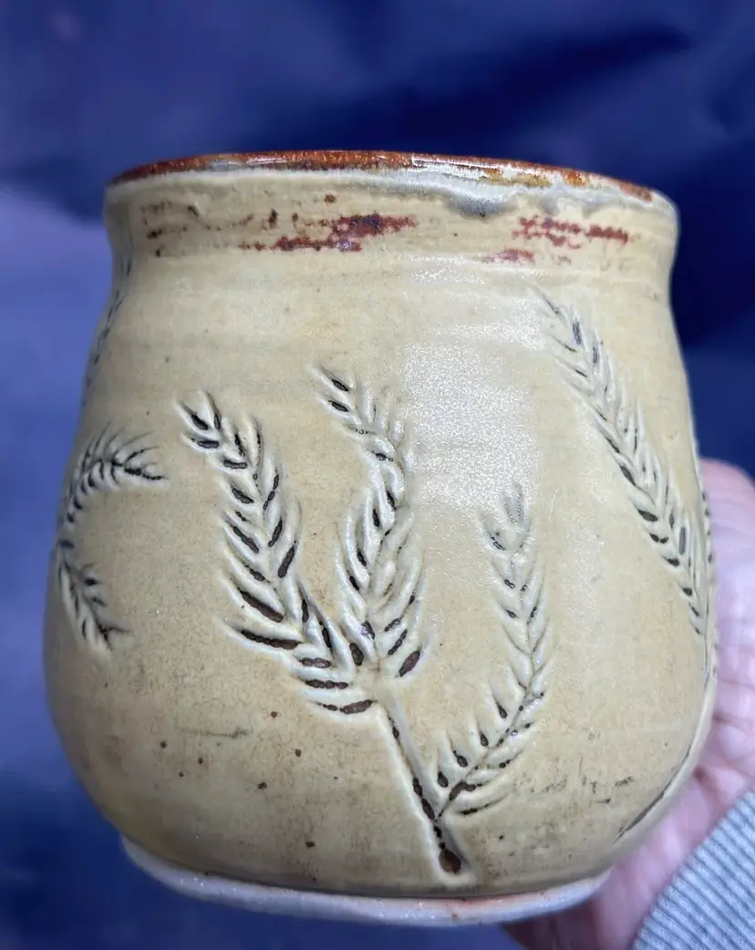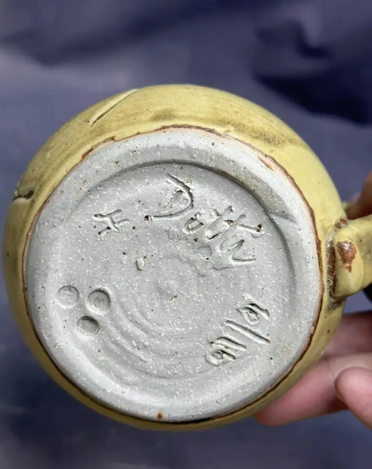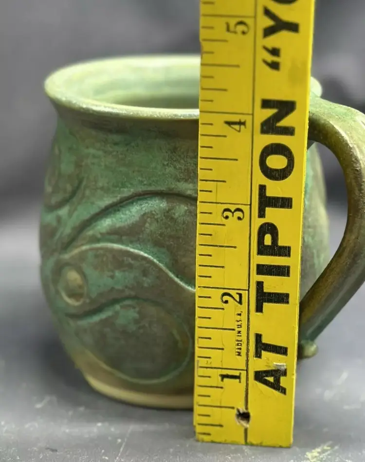 Beautiful set of 3 Art Pottery coffee cups / mugs Crafted by same Artist / signed Unused No damage Smoke free seller