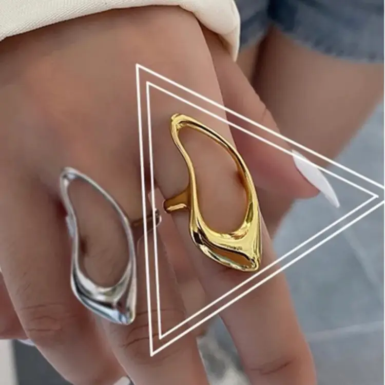 Unique sculptural design with artistic, hollow shape Available in both high-shine gold and silver finishes Lightweight and adjustable for a comfortable, customizable fit Versatile enough to wear solo or stacked Perfect for adding a contemporary edge to your outfit