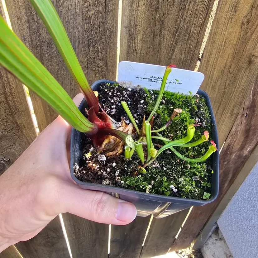 Seed Grown Sarracenia flava ornata "improved black vein" x 'Adrian Slack'