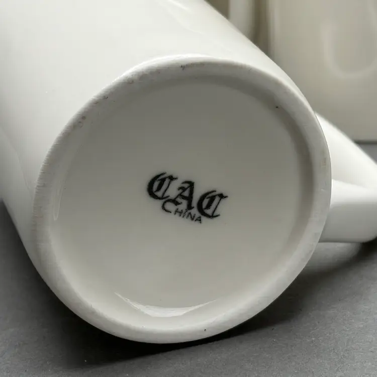• Brand: CAC China • Material: Ceramic / China • Dimensions: 3” diameter, 4 1/2” tall • Condition: It is in very good vintage condition with no visible chips, cracks or scratches.