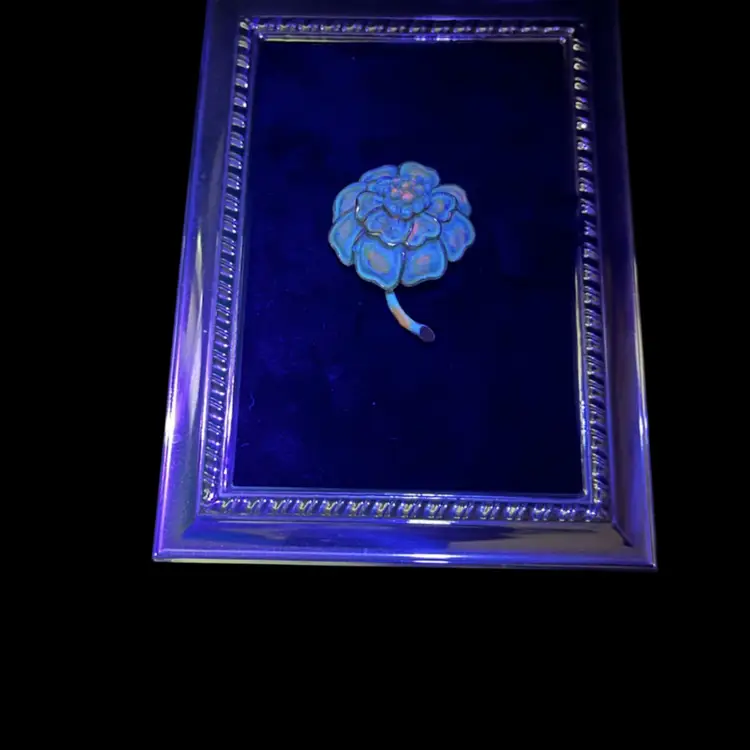 Produced during the 1950s/1960s-Is known for its distinctive layered petals and gold tone finish. It also has splashes of orange throughout. UV Glows. It really is quite pretty.